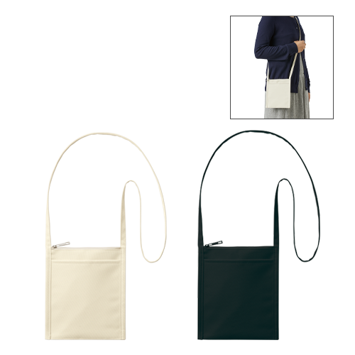 ファスナーポケット付きショルダー巾着ポーチ(撥水加工)