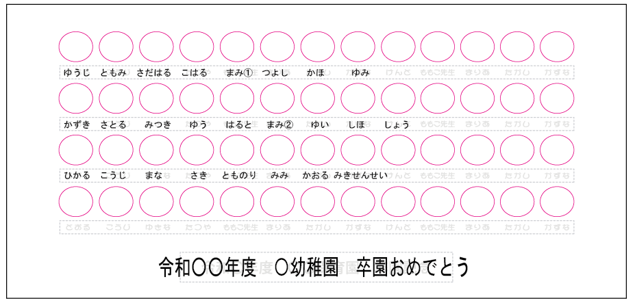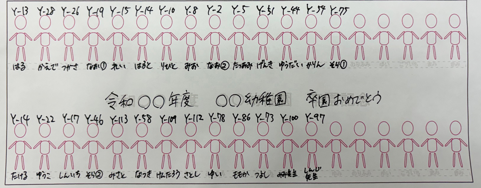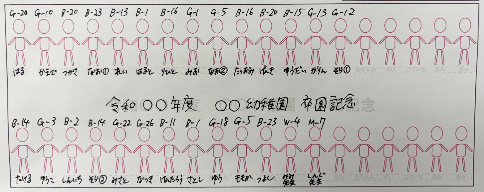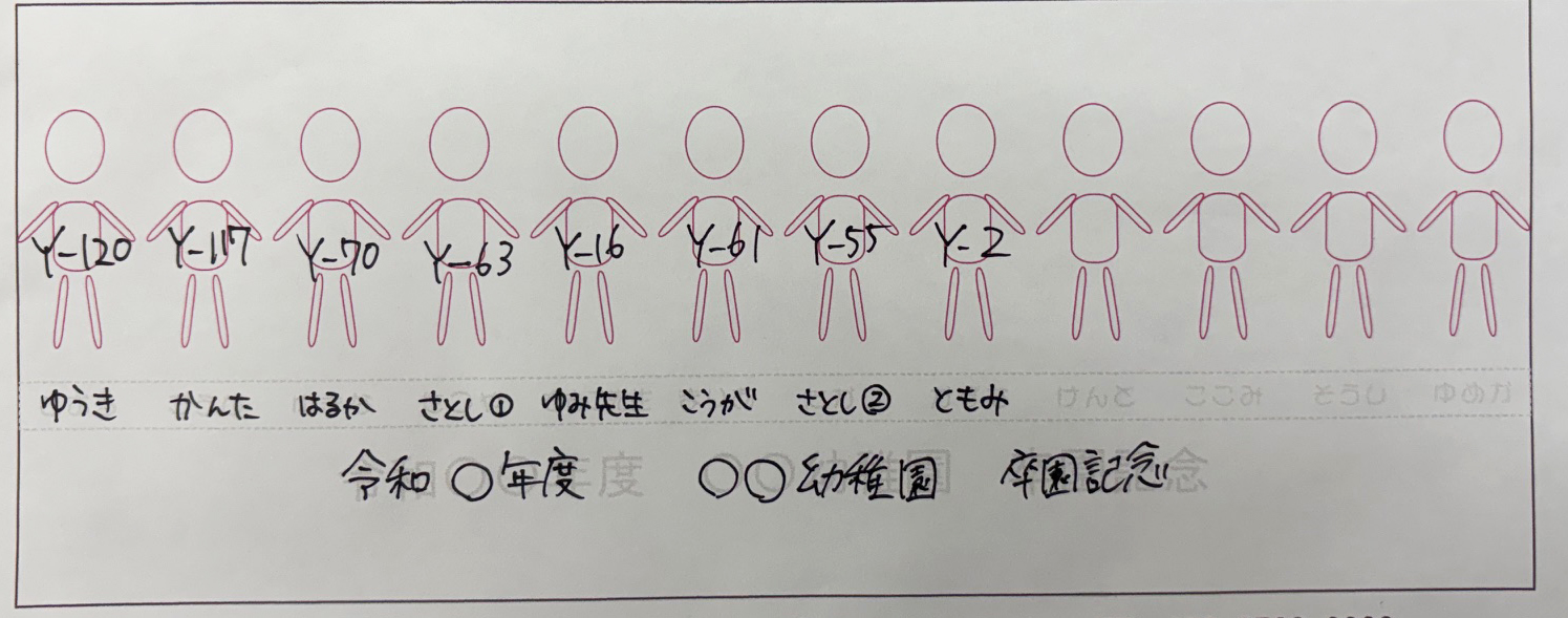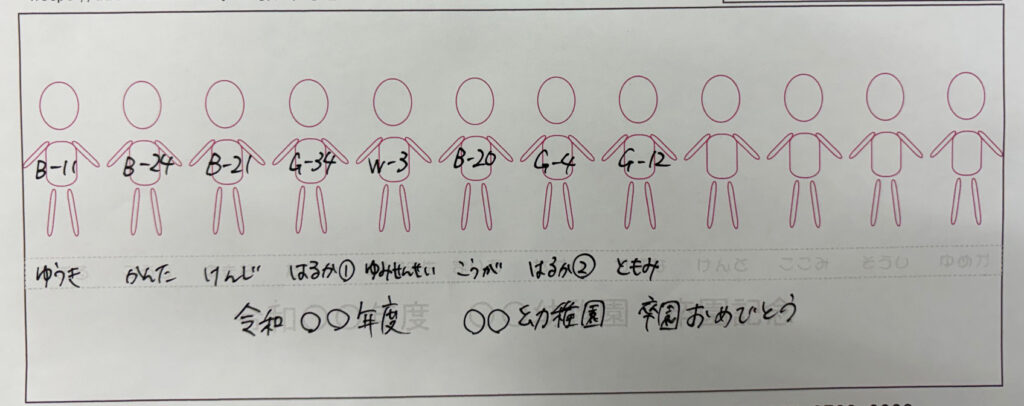 中央文言「令和〇年度 〇〇保育園 卒園記念」