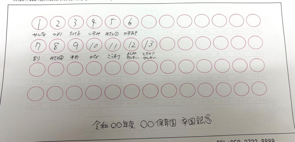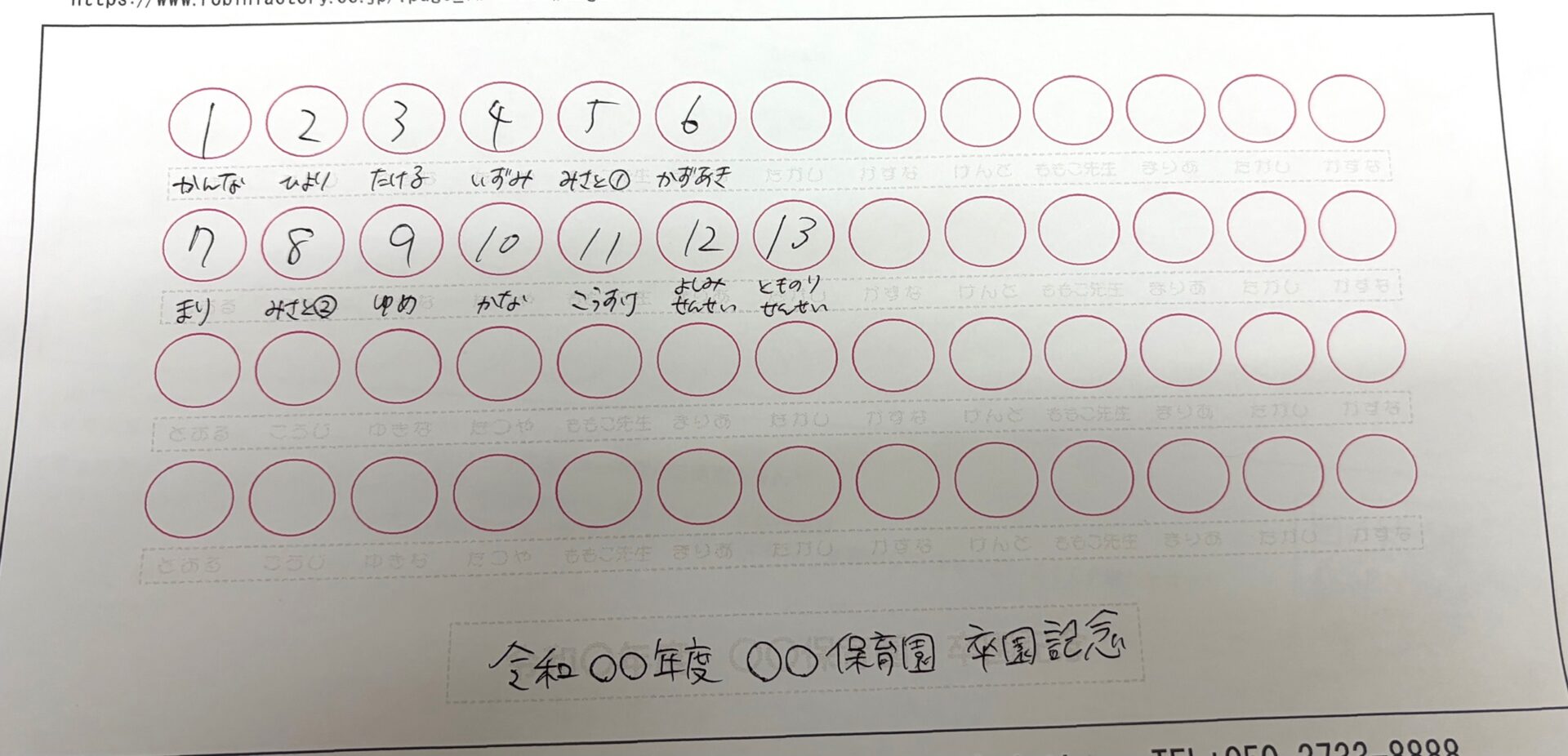 掲載人数にもよりますが、フルネームで漢字でお入れする場合、画数が多い場合は、やや文字がつぶれ気味になり、見づらくなる場合がございます。