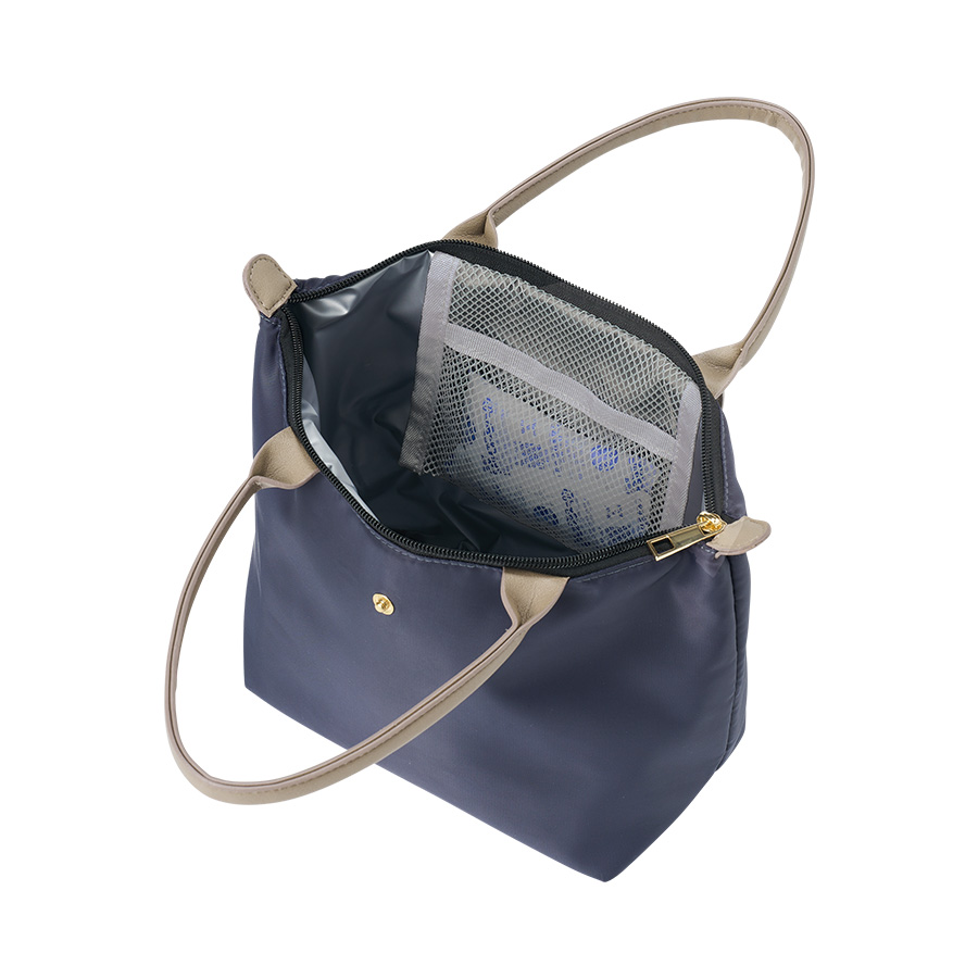 さらに内側にはメッシュポケット付きで保冷剤を入れてご使用いただくことで更に保冷効果を高めてくれます。