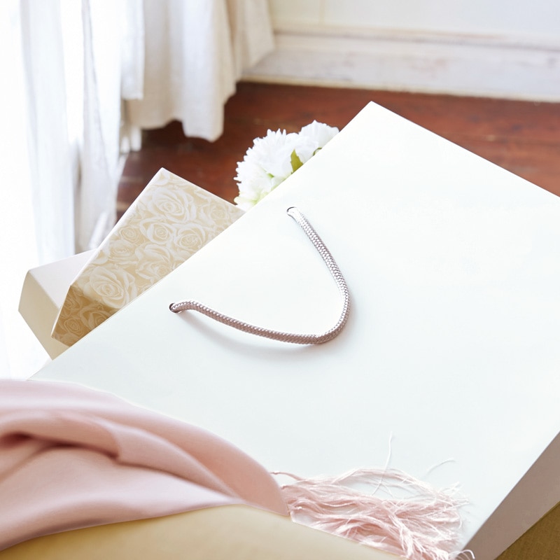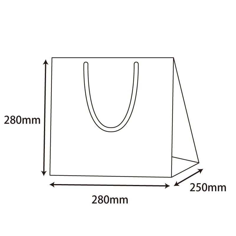 PP貼りを施した高級感のある手提げ袋です。マチが広いのでケーキやフラワーアレンジメントを入れるのに最適です。