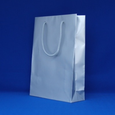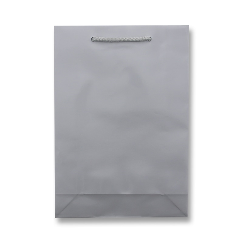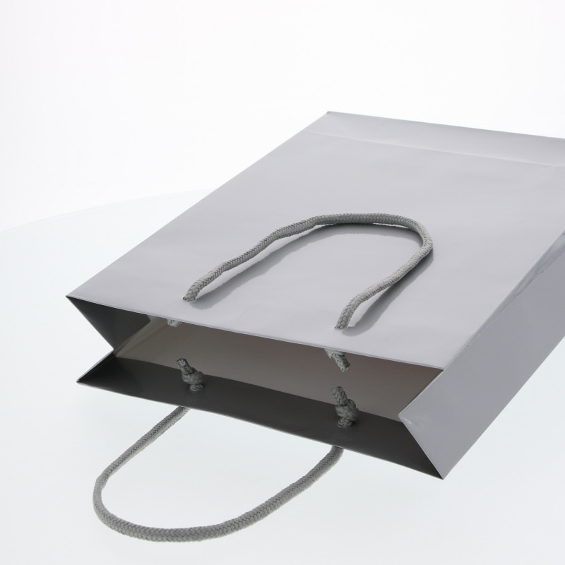 高級感のあるシルバーの紙袋です。お店のショッパーとしてご利用いただいております。