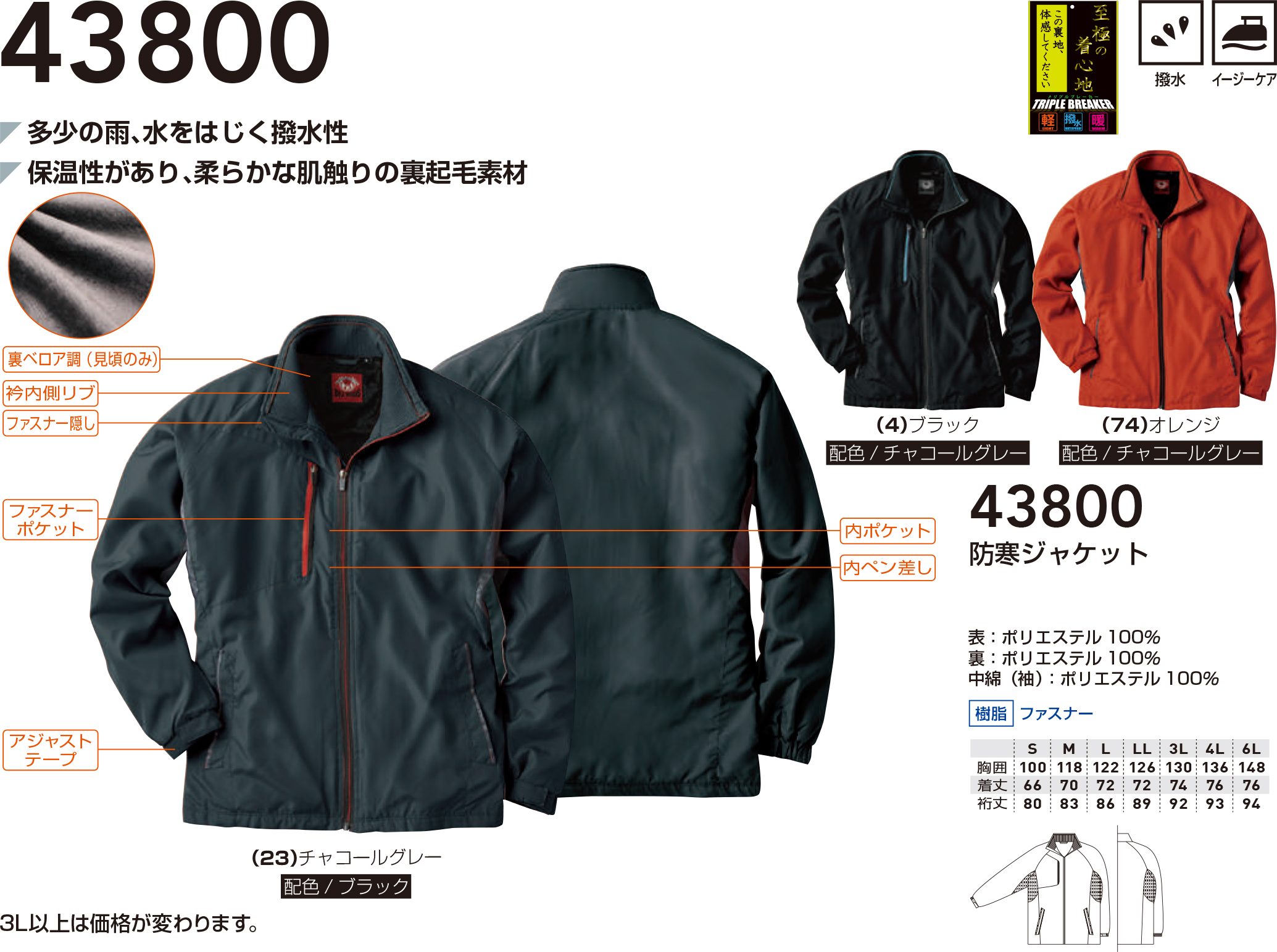 | 多少の雨、水をはじく撥水性。 保温性があり、柔らかな肌触りの裏起毛素材。