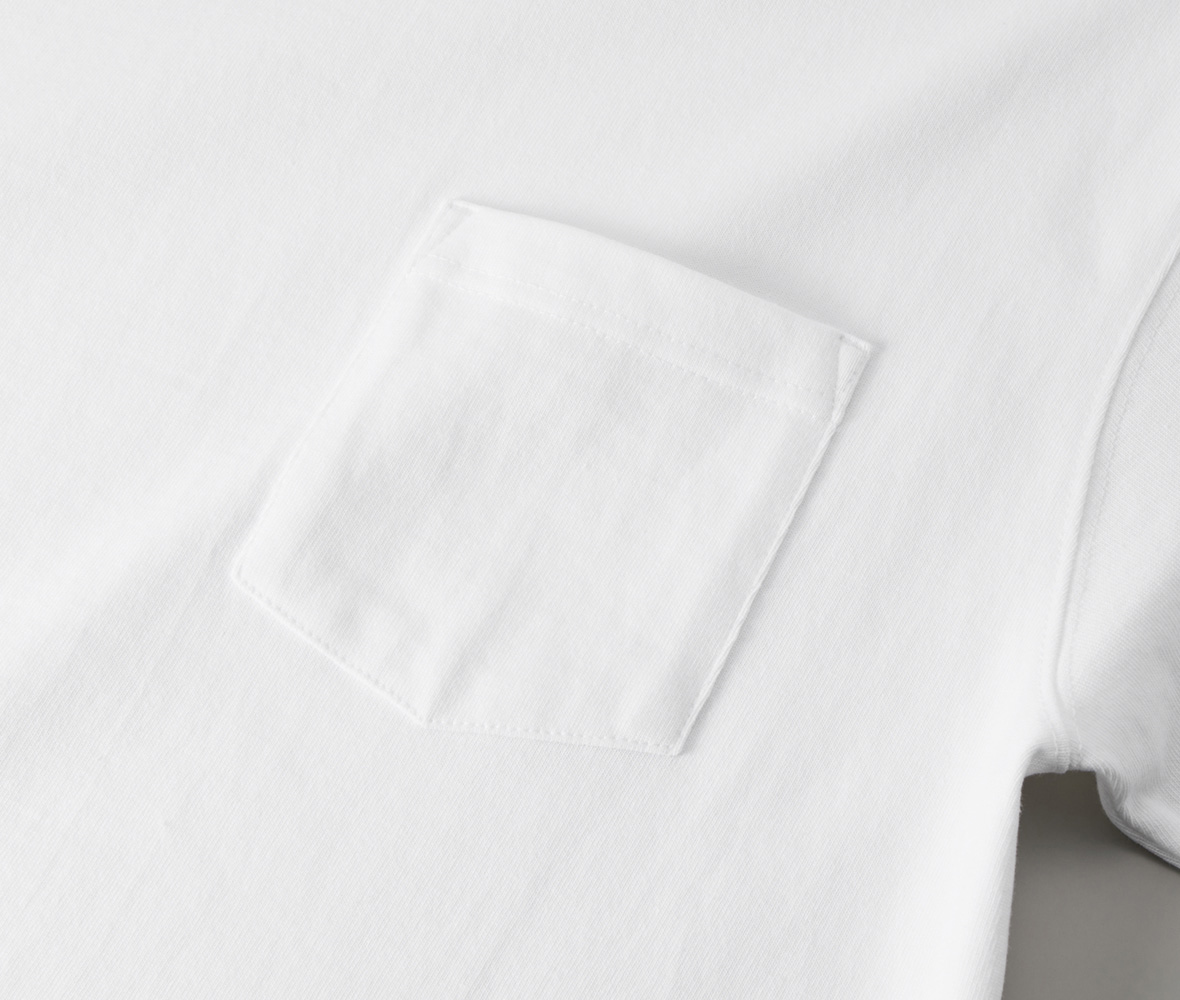 リリースから絶大な人気を誇るStyle No.4411-01のポケット付きTシャツが登場。アメリカンな雰囲気を醸し出す超極厚生地が魅力のシリーズは、着こめば着こむほど経年変化を楽しむことができ、自分だけの一枚に育てることができます。ポケットは、全体のバランスを考え大きめに設計し、着用したときに一番きれいに見える位置に配しました。さらに、ヴィジュアルだけでなくカードやガジェットなどを入れやすい大きさで実用性も兼ね備えています。さまざまなライフスタイルに寄りそう、ワードローブに欠かせないTシャツです。