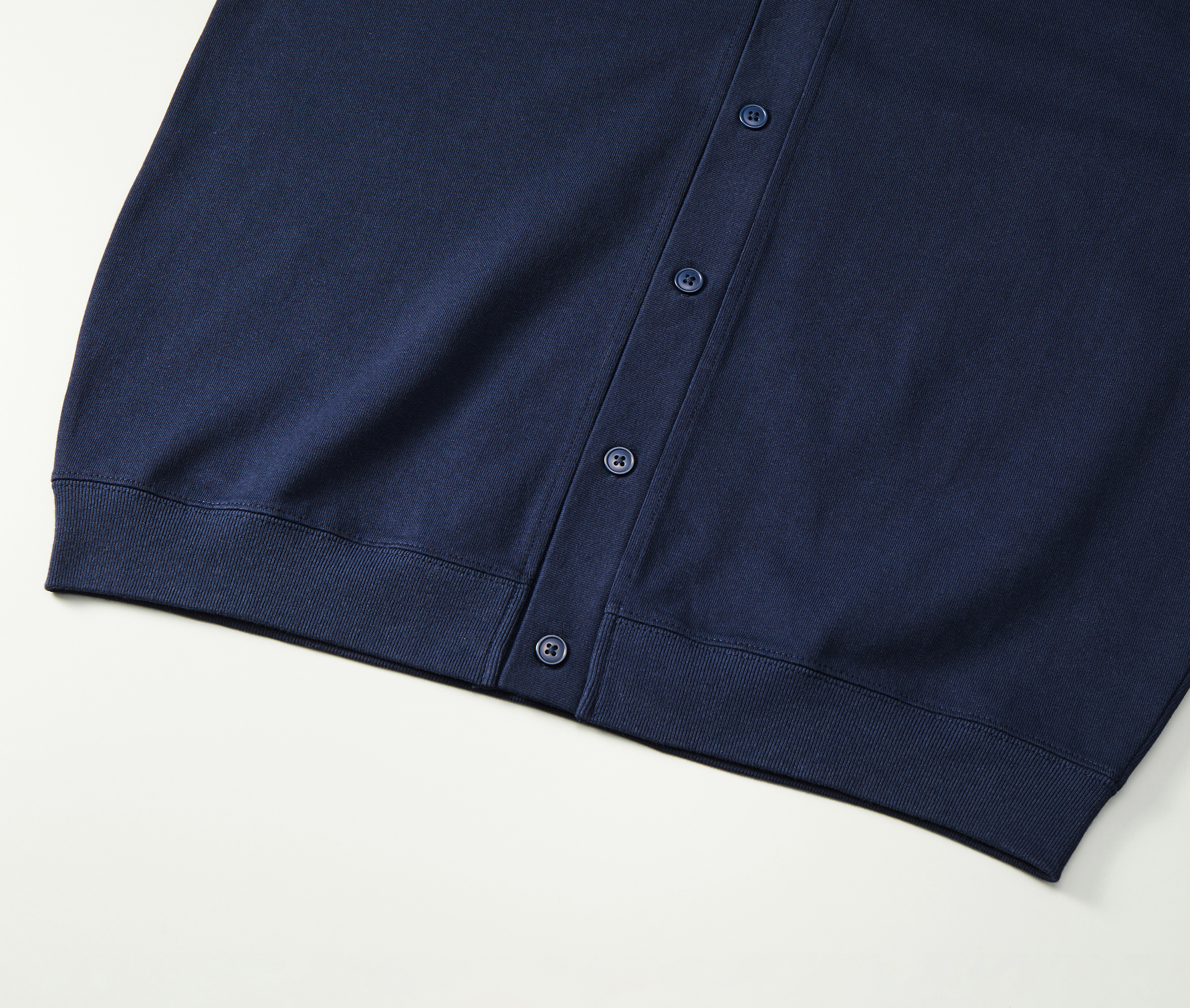 - 光沢のある小ぶりなボタンは身頃同色