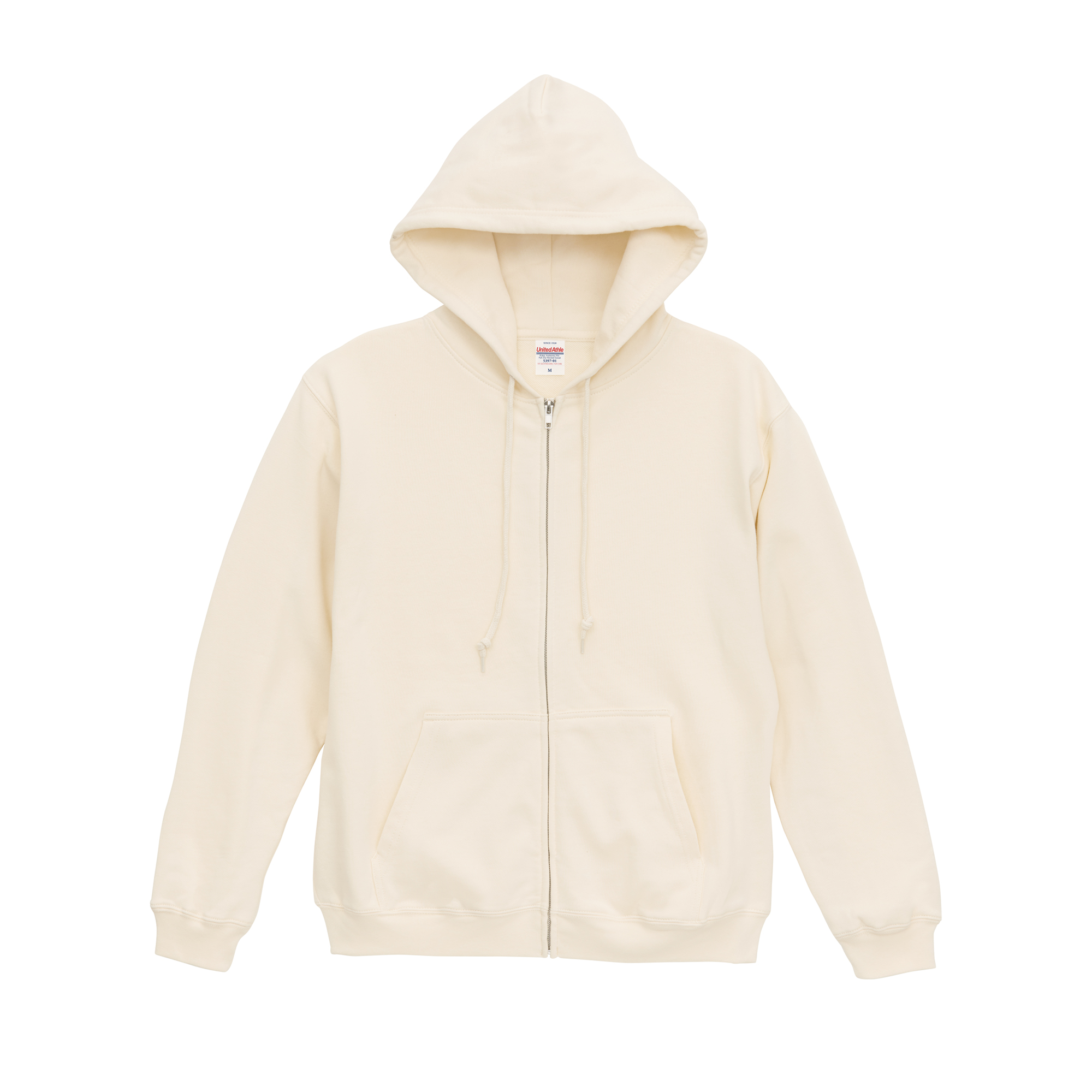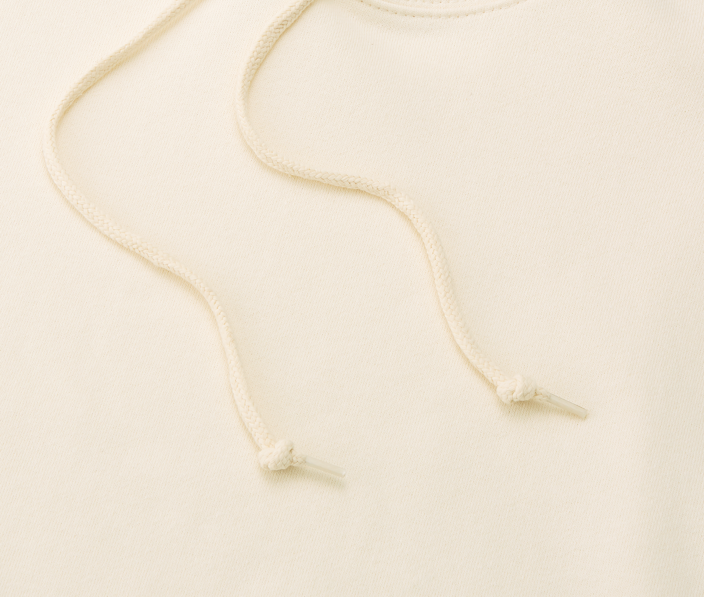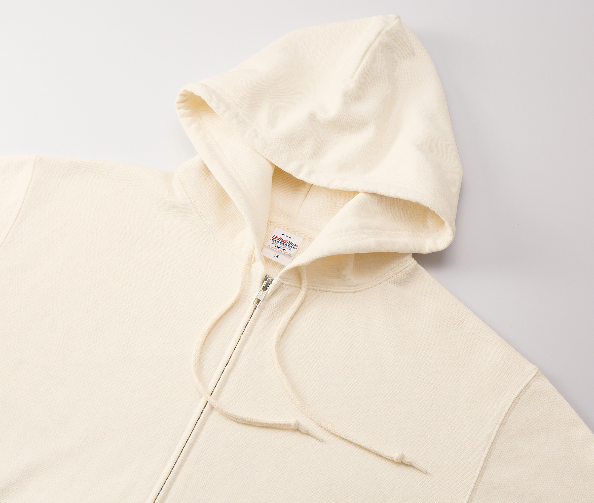 - 太めのフードひもは丸ひも身頃同色、ひも先はセルチップ加工