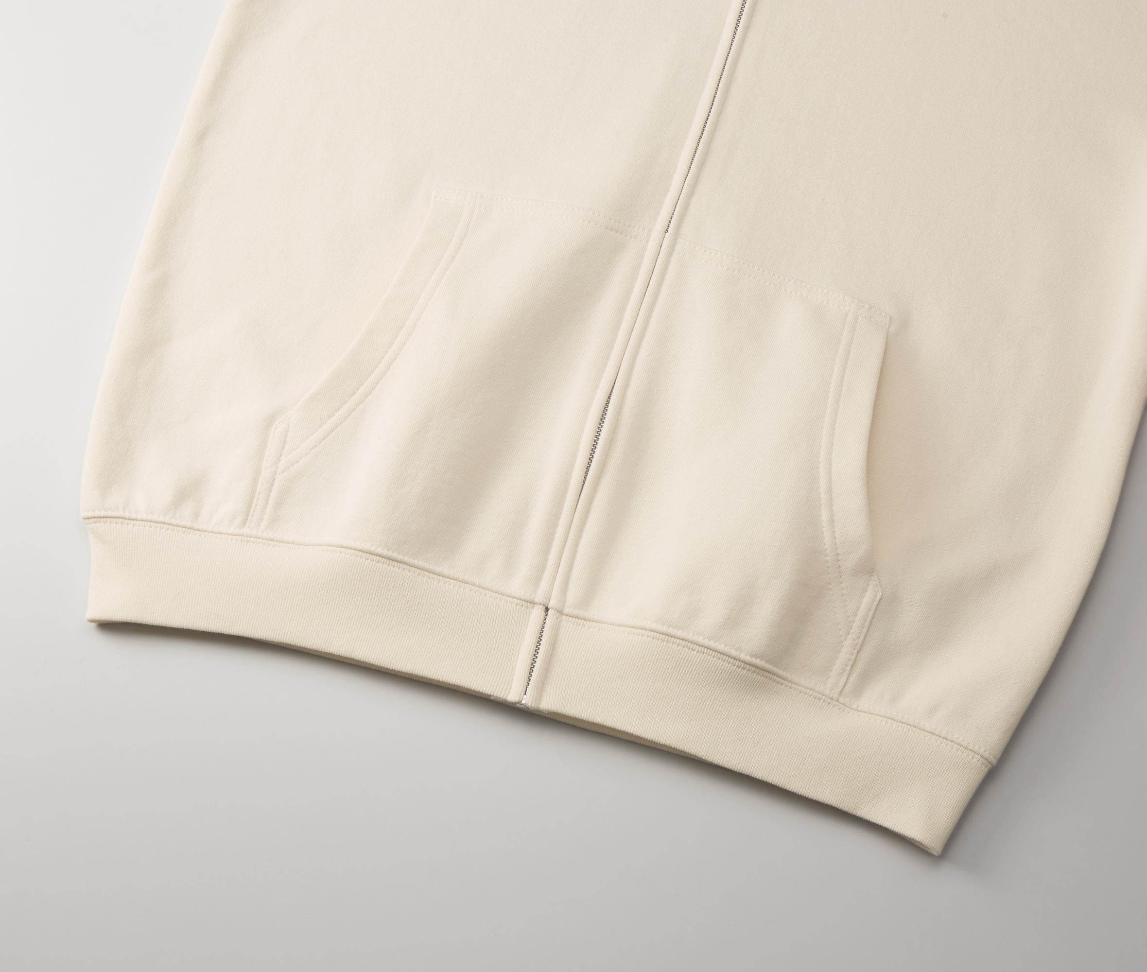 - 大きめのカンガルーポケット、裾口はリブ仕様