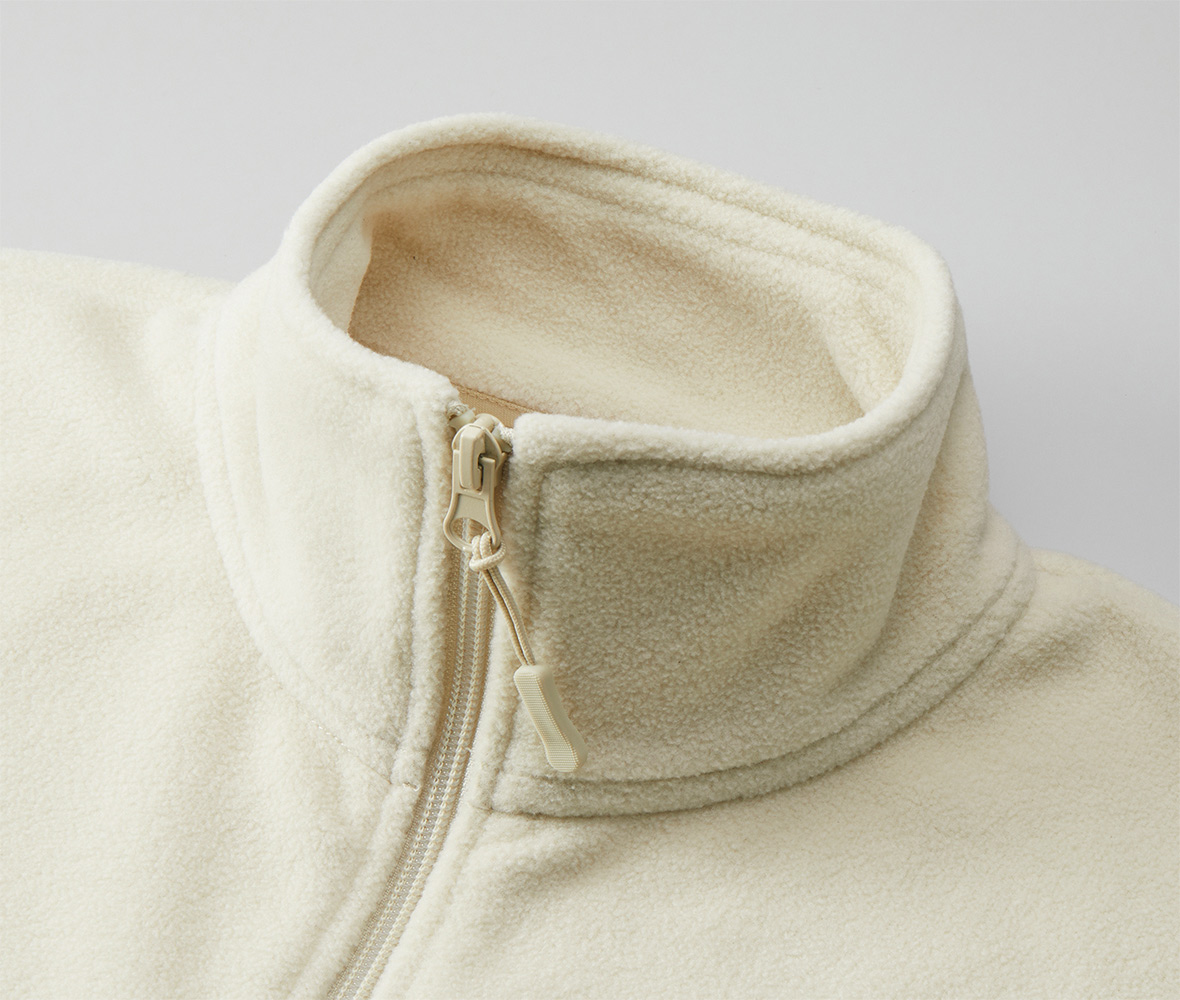 - 襟はスタンドカラー、コイルファスナーにはジッパータブ付き