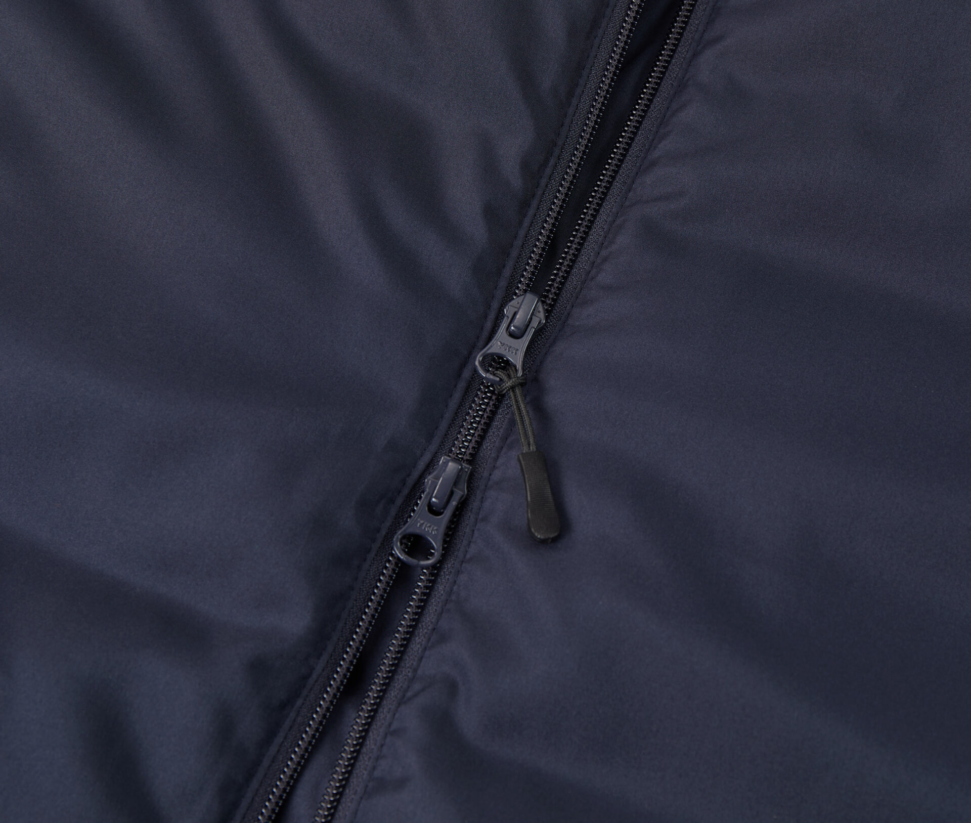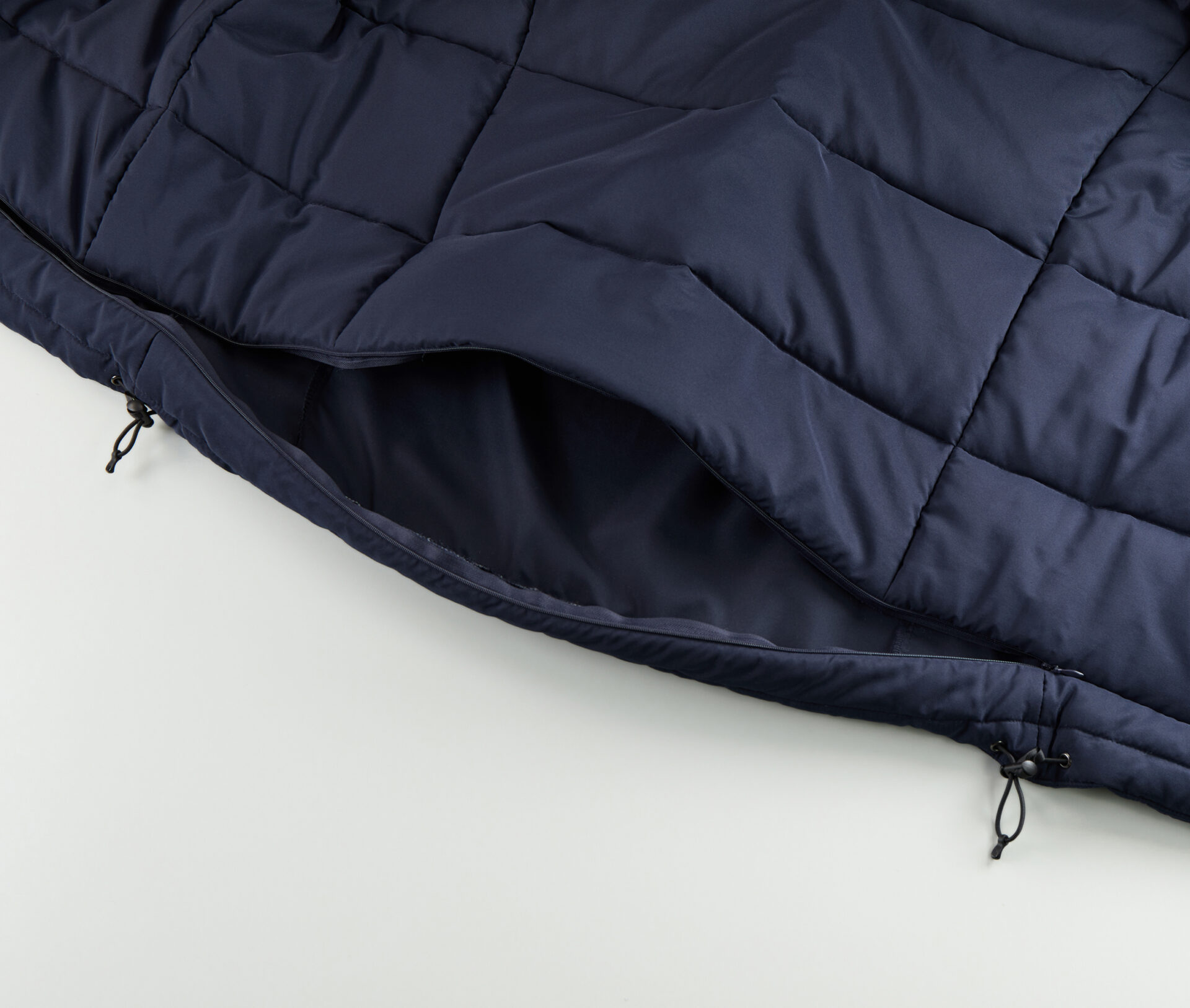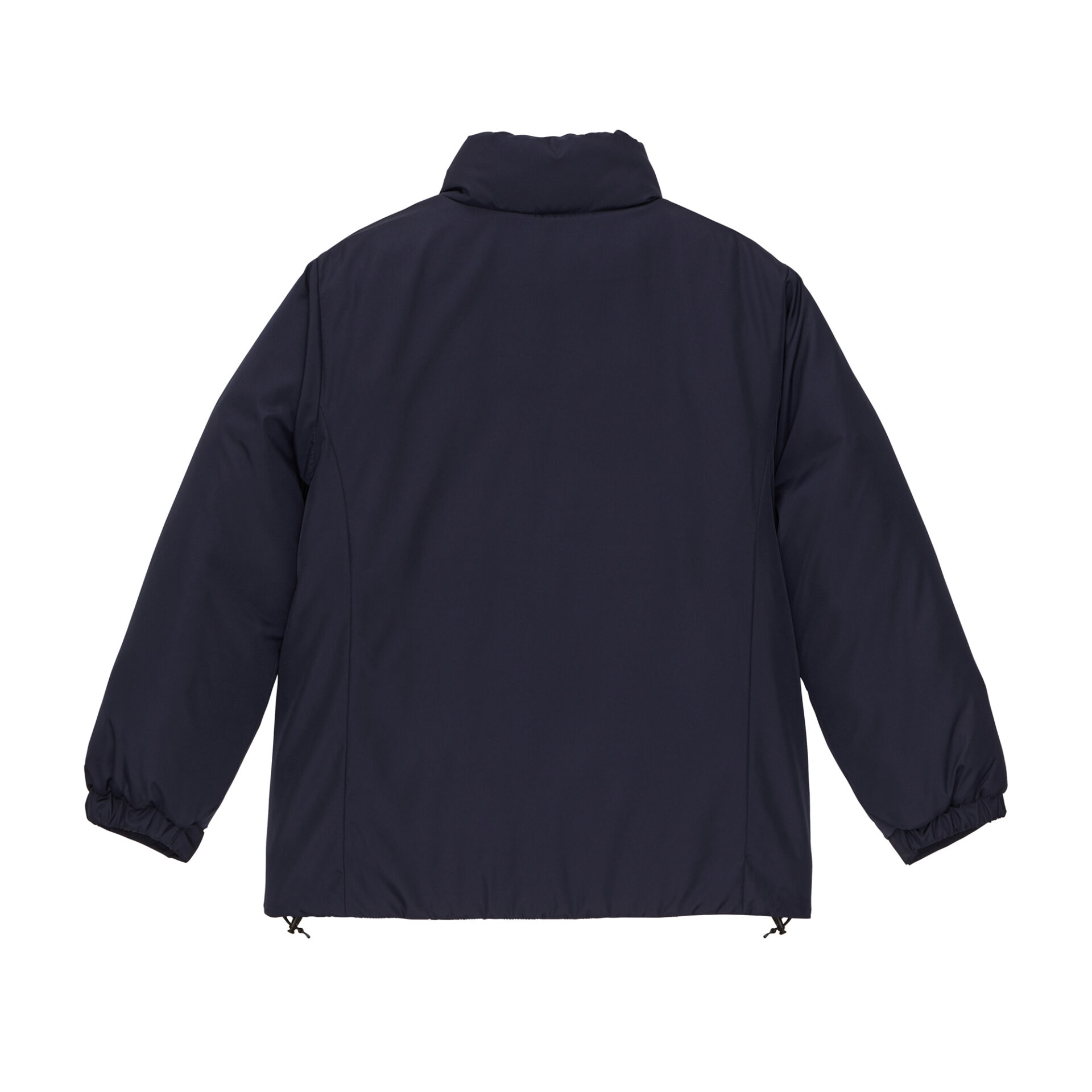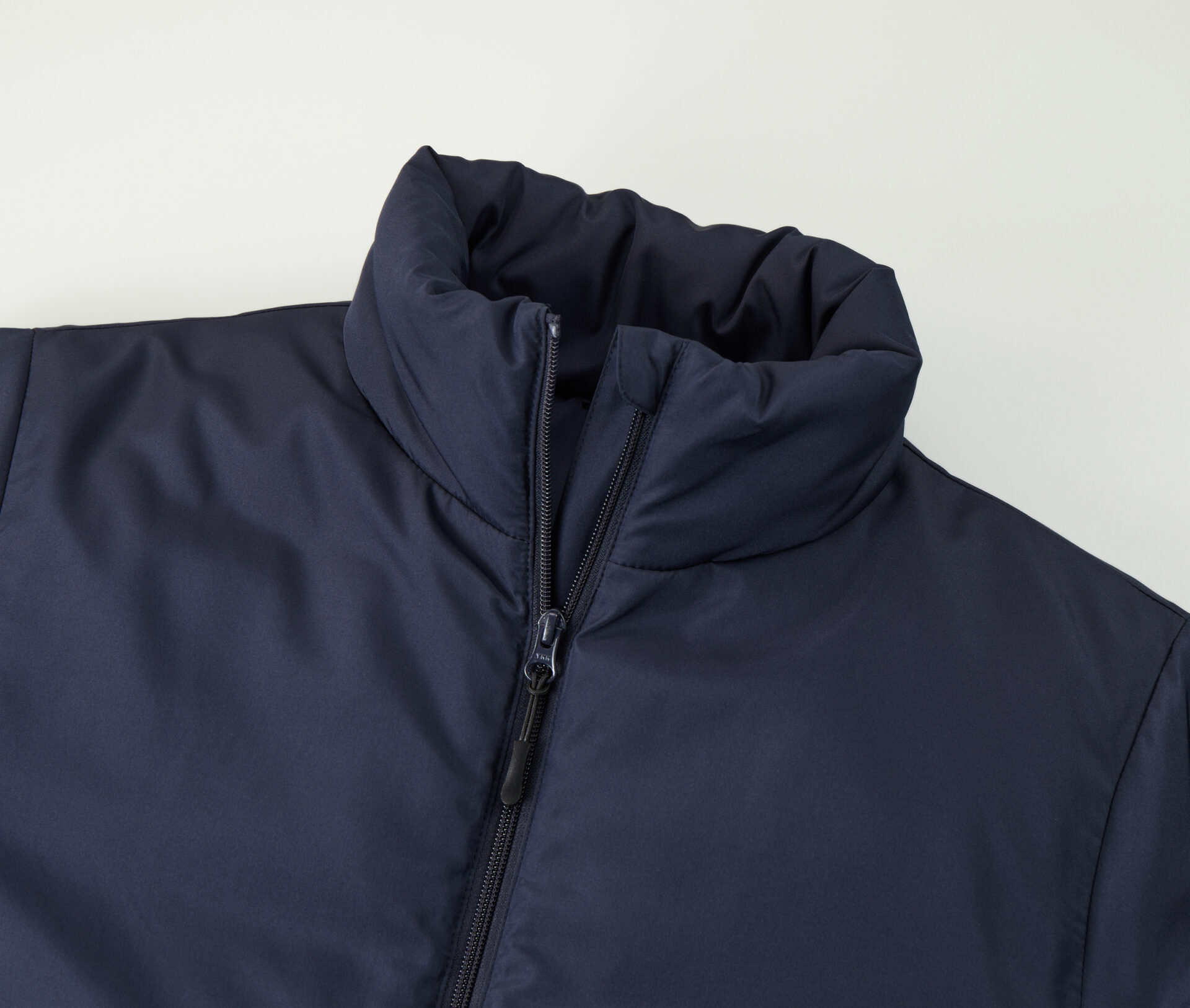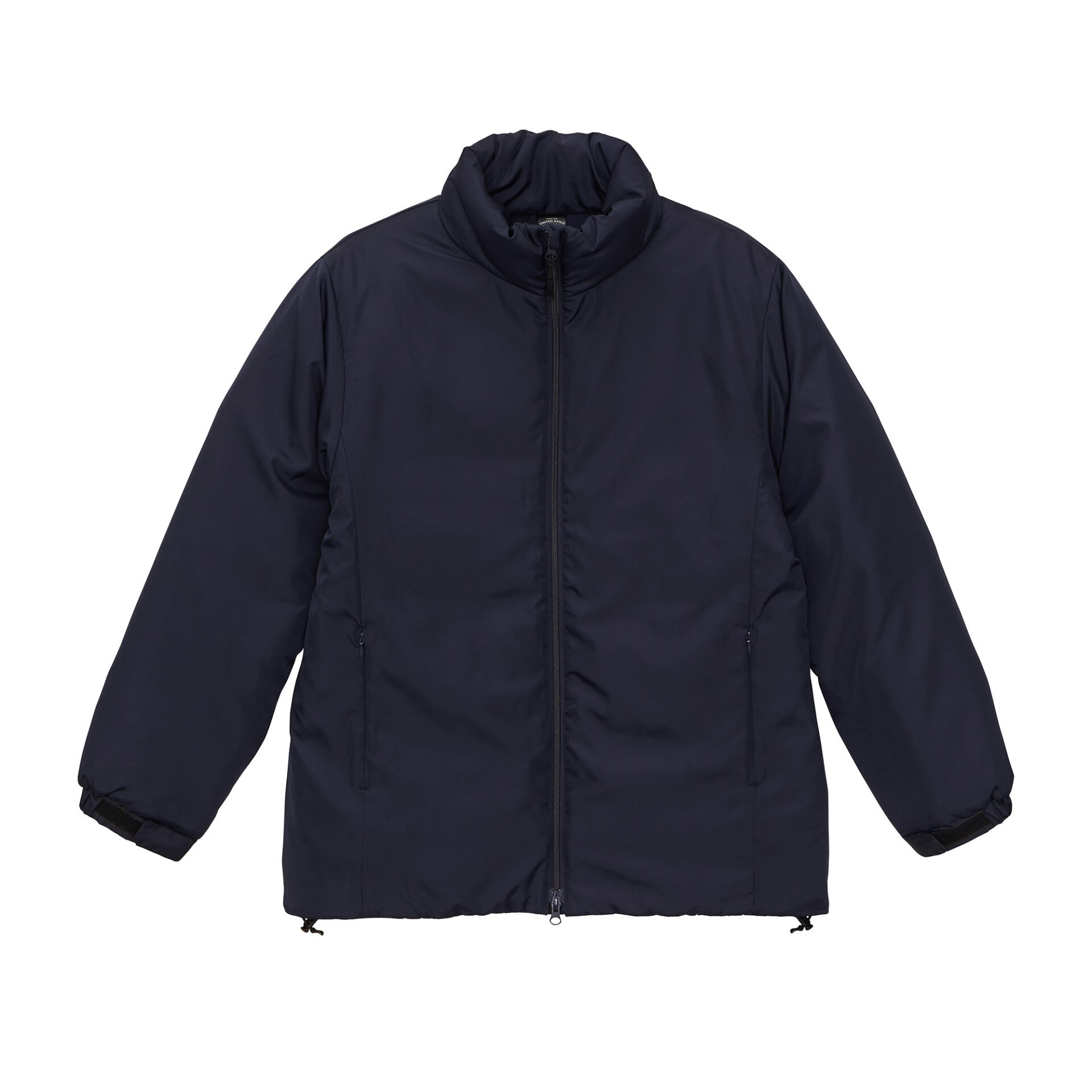 ミリタリーのアウターから着想を得た、あたたかな中綿ジャケット。首もとはすっきりとしたスタンドネックタイプで、フーディと重ねるなど、レイヤードもしやすいのが魅力。裏地は中綿が片寄りにくいキルティング仕様でありながら、外側はシームレスなデザインでどんなスタイルにもフィットします。極細の糸を高密度に織り上げたタフタ生地を使用しているので、なめらかで高級感のある仕上がりです。ドローコードで裾口を絞れば、丸みのあるシルエットに変化。ファスナーはYKK社製のダブルスライダー、袖口は面ファスナーで風の侵入を防ぐことができるなど、シンプルでありながら、随所にこだわりがつまった一着です。