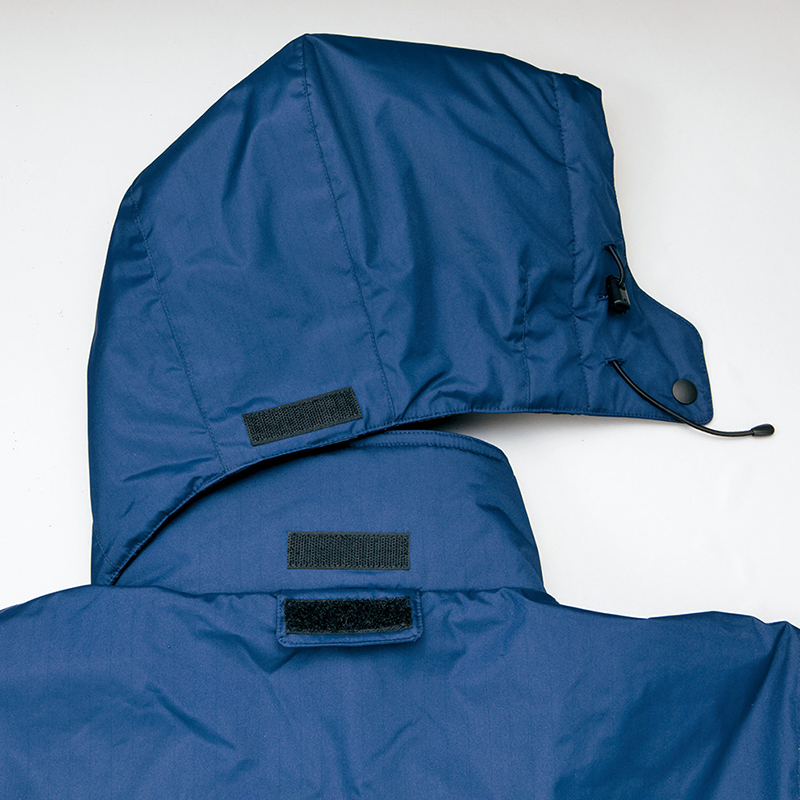 | 安心安全の基準JIS T8118適合、 防風効果も装備した実力派。 【AZ-9366制電防寒ブルゾン(男女兼用)】 ●素材/表地:制電ポリエステルタフタ(裏PUコーティング) 平織り ポリエステル100% 帯電防止・制電糸入り 中綿:ポリエステル100%裏地:タフタ ポリエステル100% ●加工/軽撥水 ◎ドットボタン/プラスチック ◎ファスナー/ビスロン® (スライダー/プラスチック) □フード取り外し可能 □マジックテープ/(前立て・袖カフス) □反射材 □内ポケット □ペン差し付(左袖)