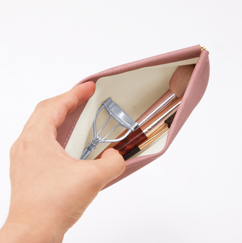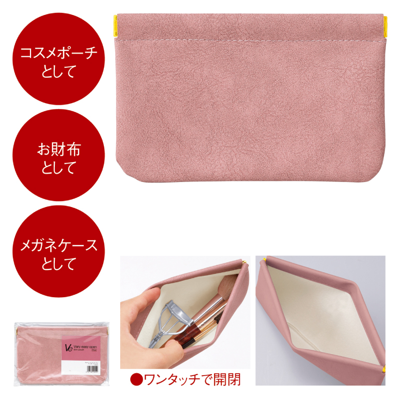 ファスナーがないぶん開閉も楽々。お財布やメガネケースなどマルチに使えるポーチ。