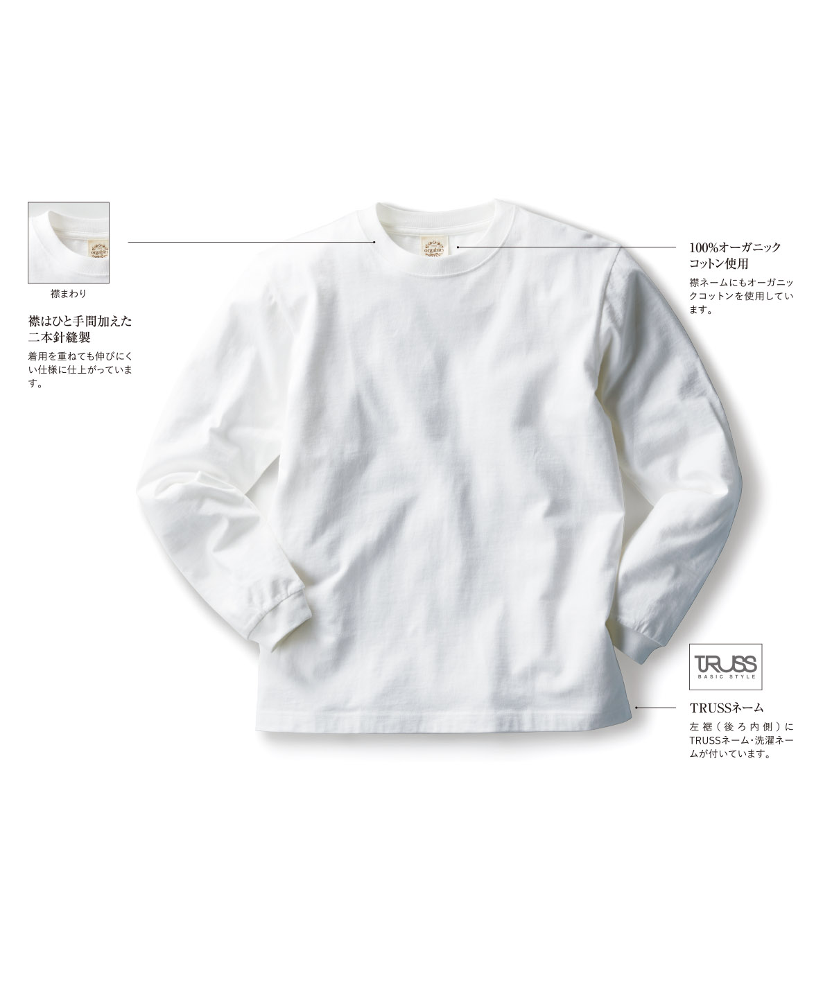 オーガニックコットン生地のリブ有りロングスリーブTシャツ。