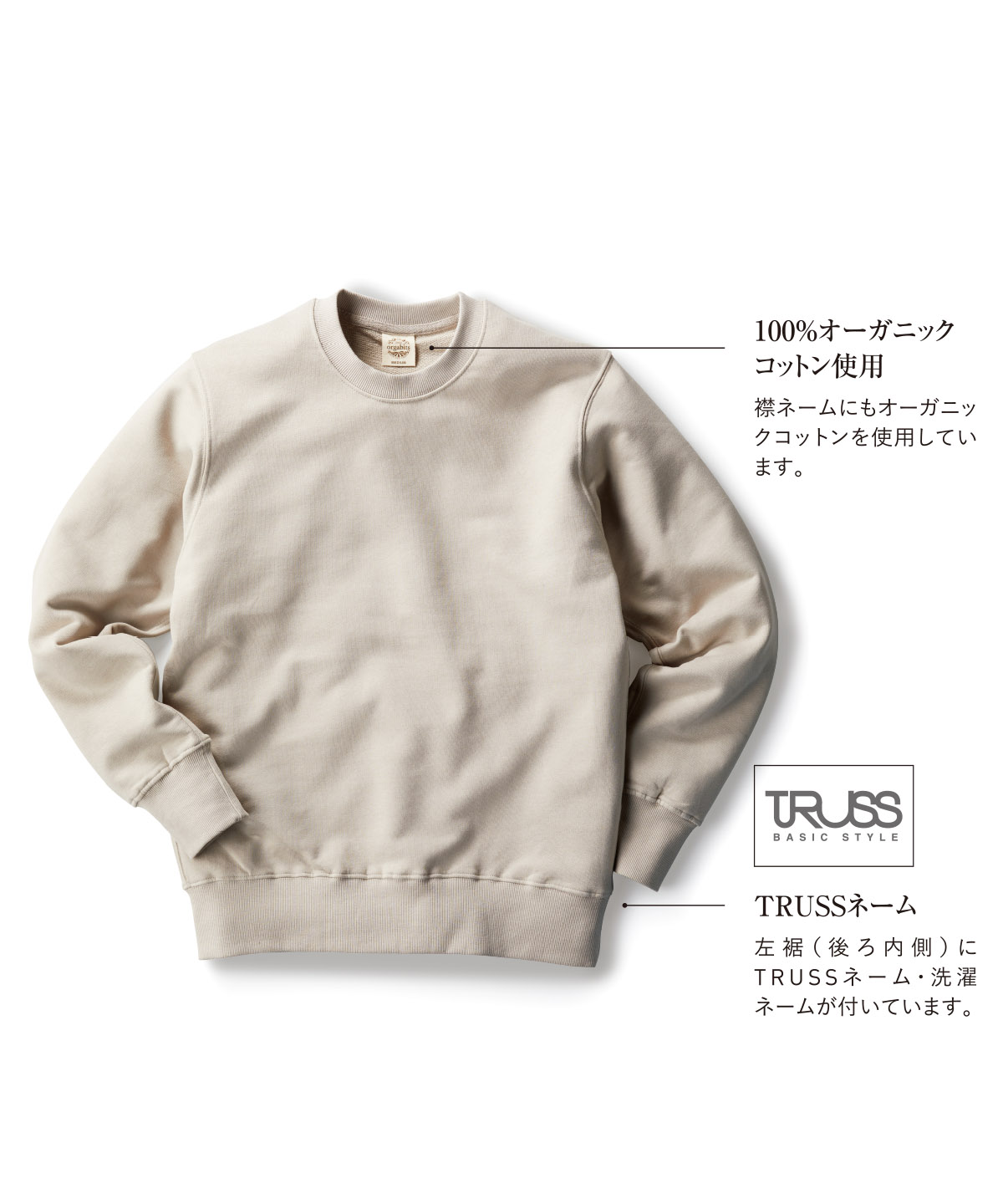 オーガニックコットン100%の裏パイル素材のスウェット。