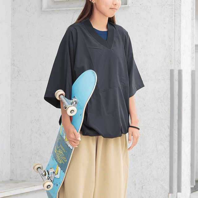 ちょっと肌寒い時にサクッと上からかぶってしまえば、風をしのげるピステ。