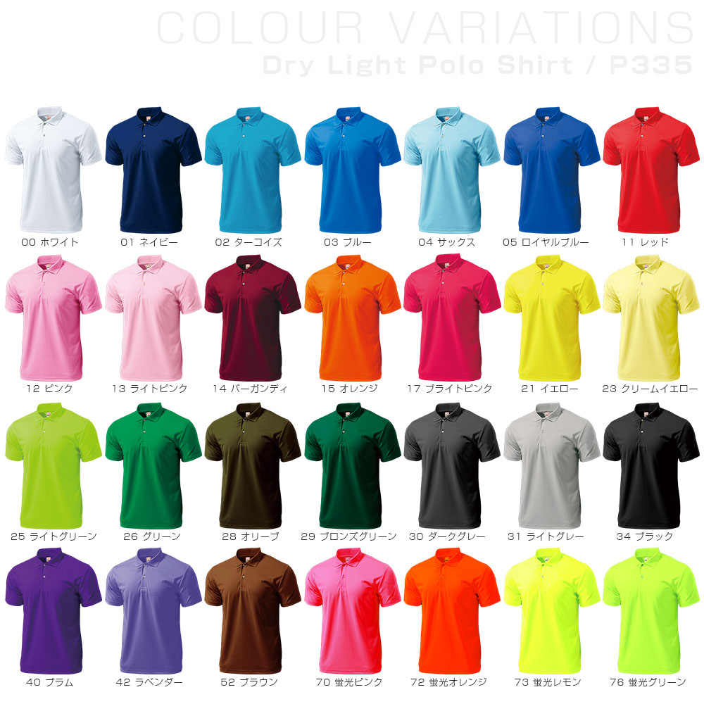 ※XS(160cm)・3XLは00(ホワイト)・01(ネイビー)・05(ロイヤルブルー)・11(レッド)・21(イエロー)・34(ブラック)のみの展開となります。