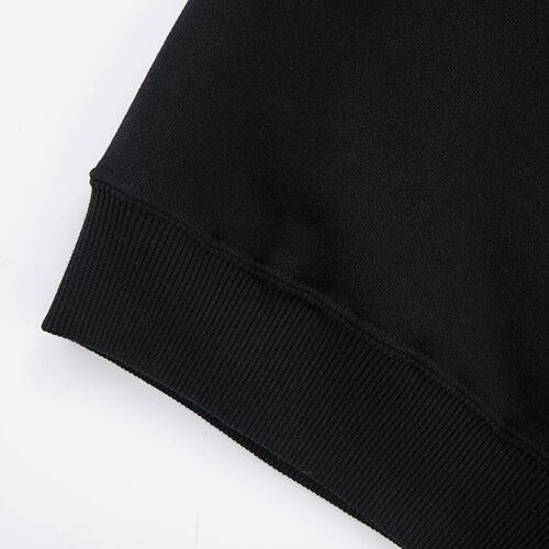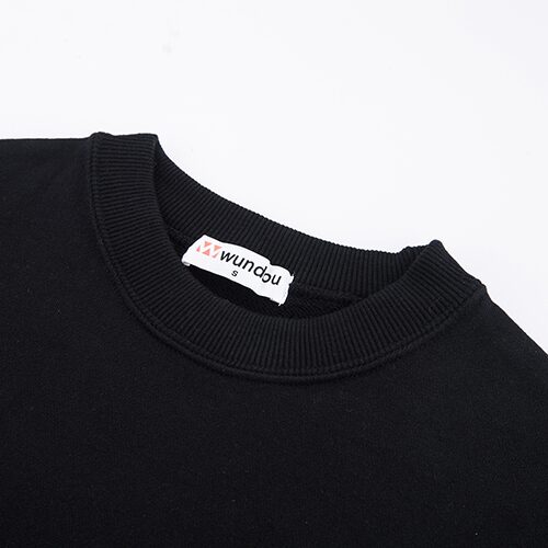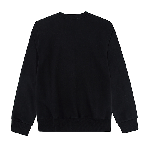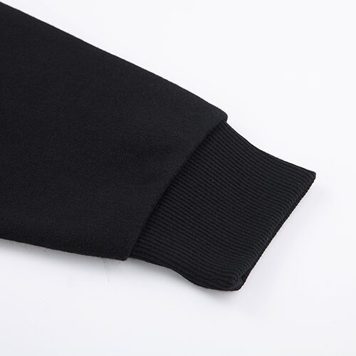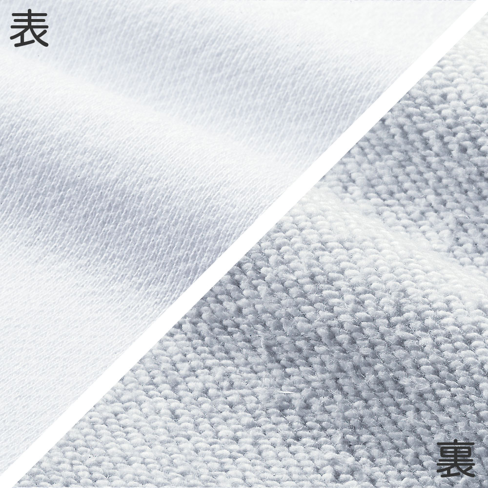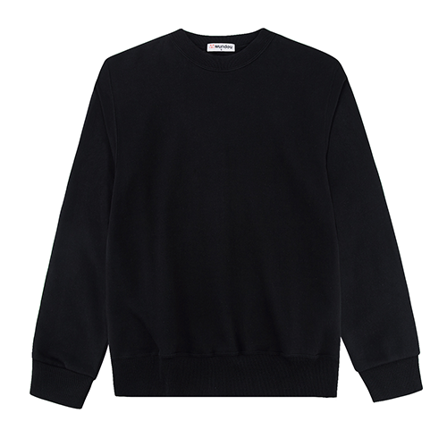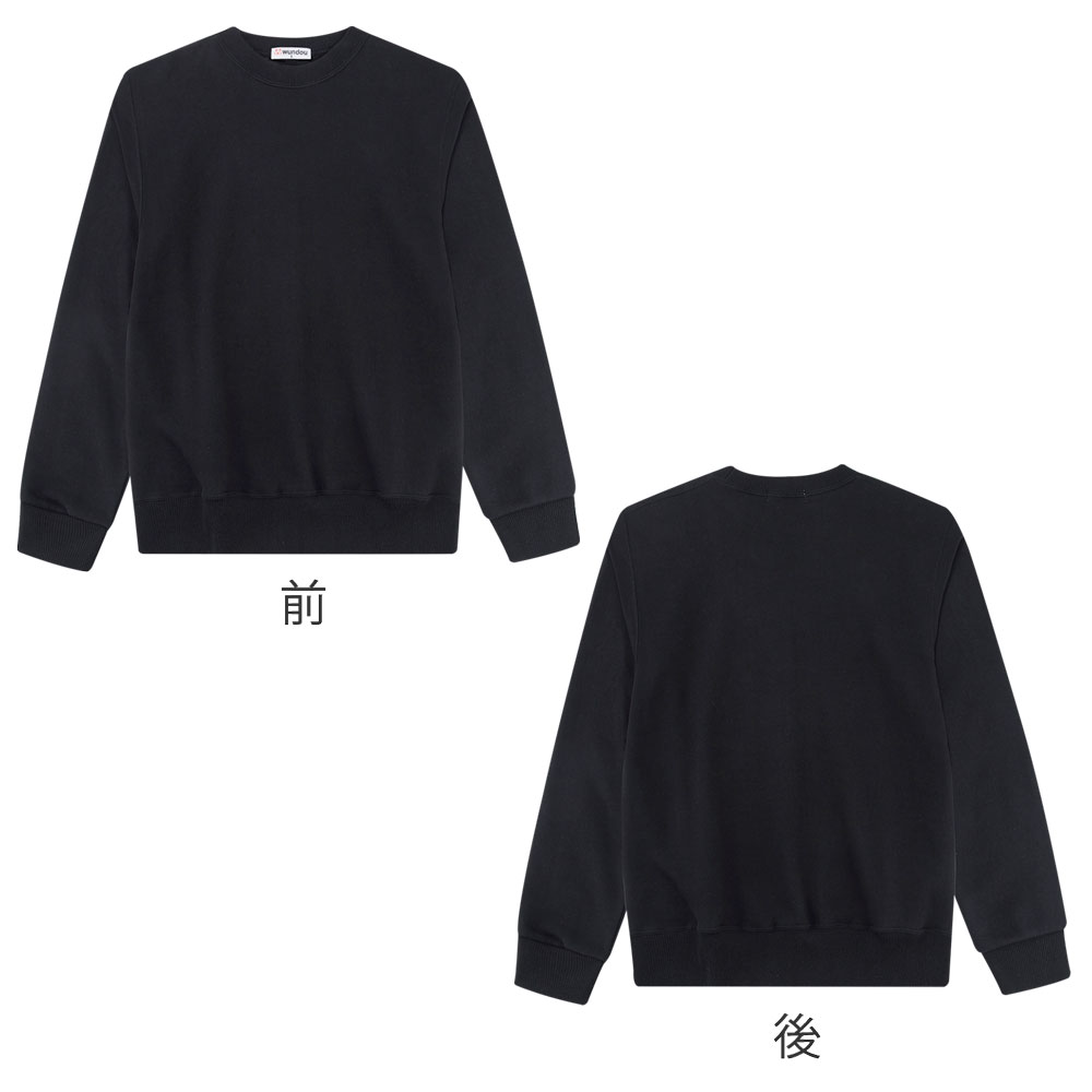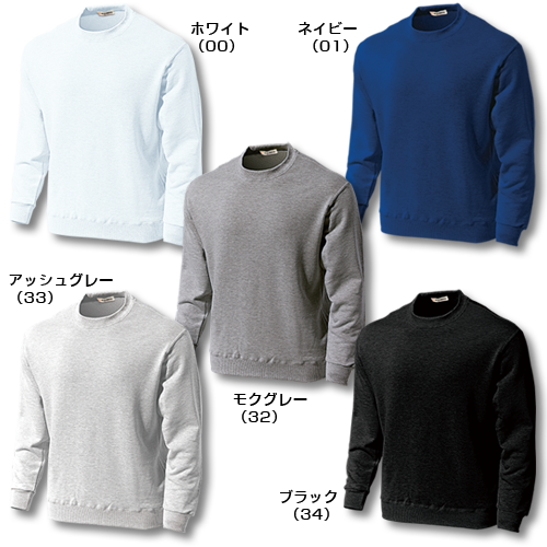 綿100%裏毛素材、11.2ozの厚手トレーナーです。身生地に合わせて衿・袖・裾は丈夫なフライス編みで縫製されており型崩れしずらい頑丈なアイテムで、学校体育着や官公庁向けのウェアとしても安心して利用できます。