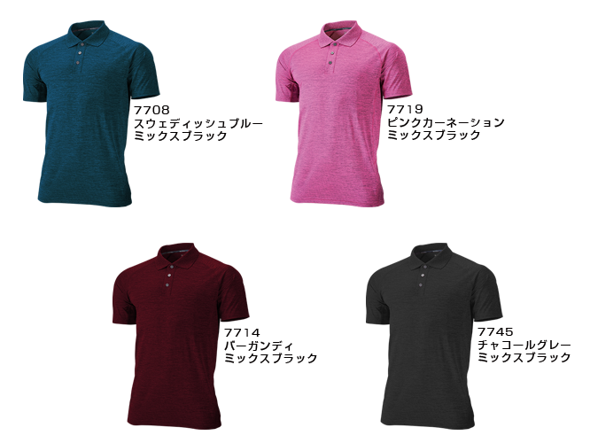 ポリエステル94%、ポリウレタン6%の吸汗速乾素材に、裏はメッシュで汗をかいても肌離れが良くサラッとした着心地のフィットネスポロシャツ。ダークなミックスカラーは年齢を選ばず幅広いニーズに対応します。