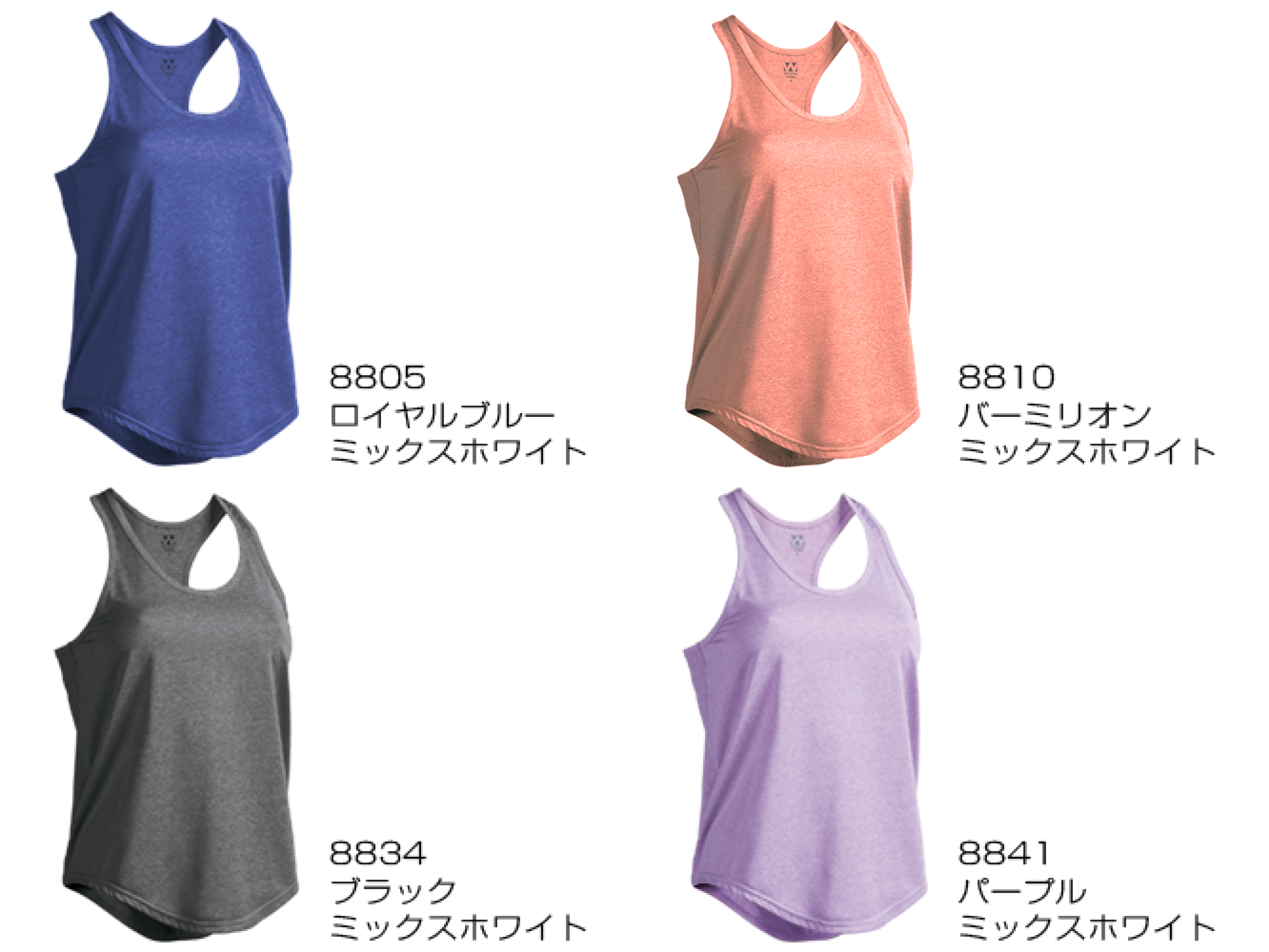 人気の高いミックスカラーの吸汗速乾ストレッチタンクトップ。裾をまるくカットしたデザインは、ヒップラインをほどよく隠し脚を長く見せる効果があります。 ポリエステル83%、ポリウレタン17%の伸縮性のある生地はツルツルしてしっとり感のある肌触りで、もちろん吸汗速乾素材です。また、伸びがよく引っ張りに強いウーリー糸を使用しています。