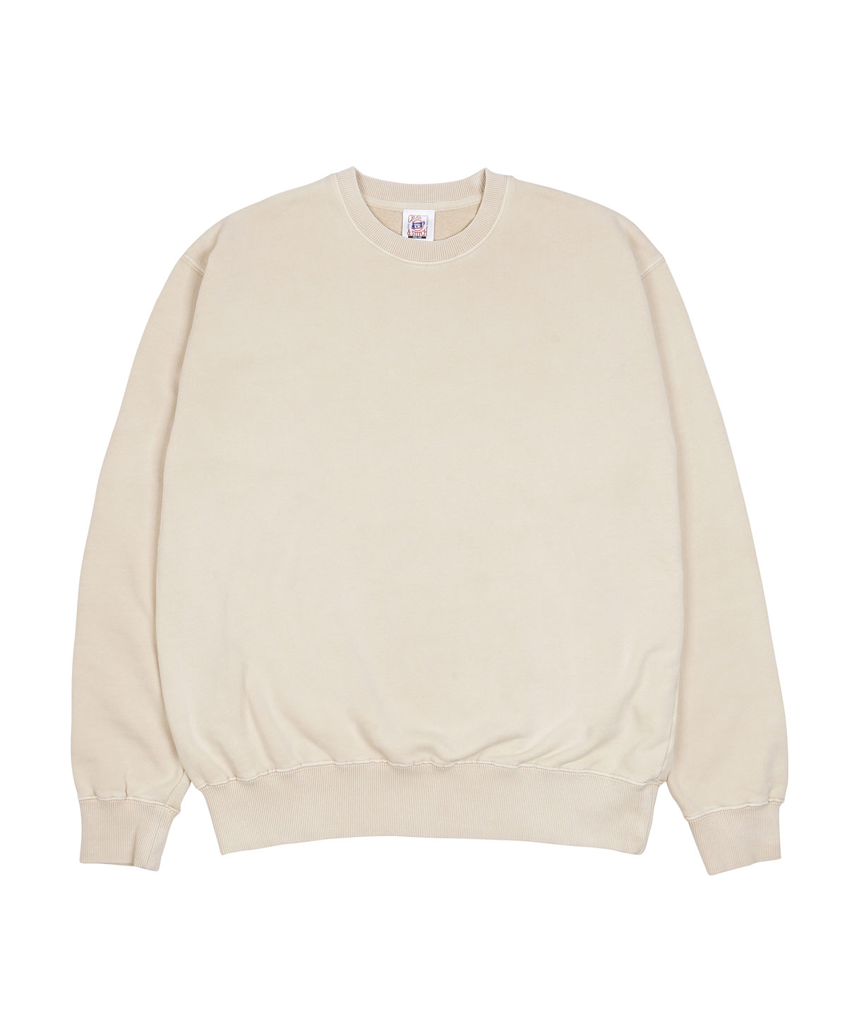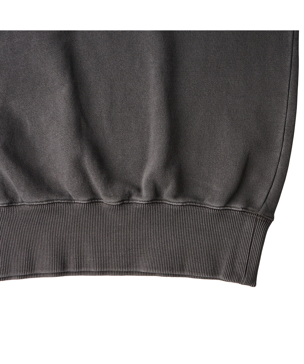 ピグメント(顔料)染めの裏毛スウェット!裏糸をOE(オープンエンド糸)にすることでシャリ感のある肌触りに!