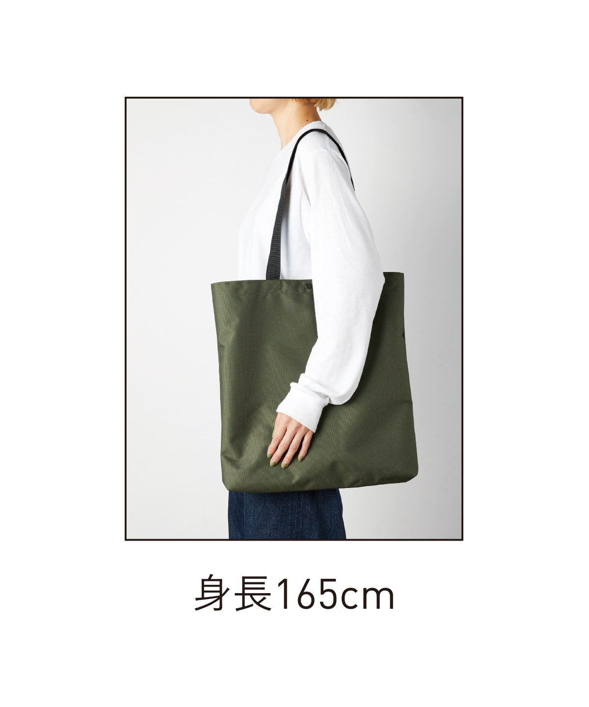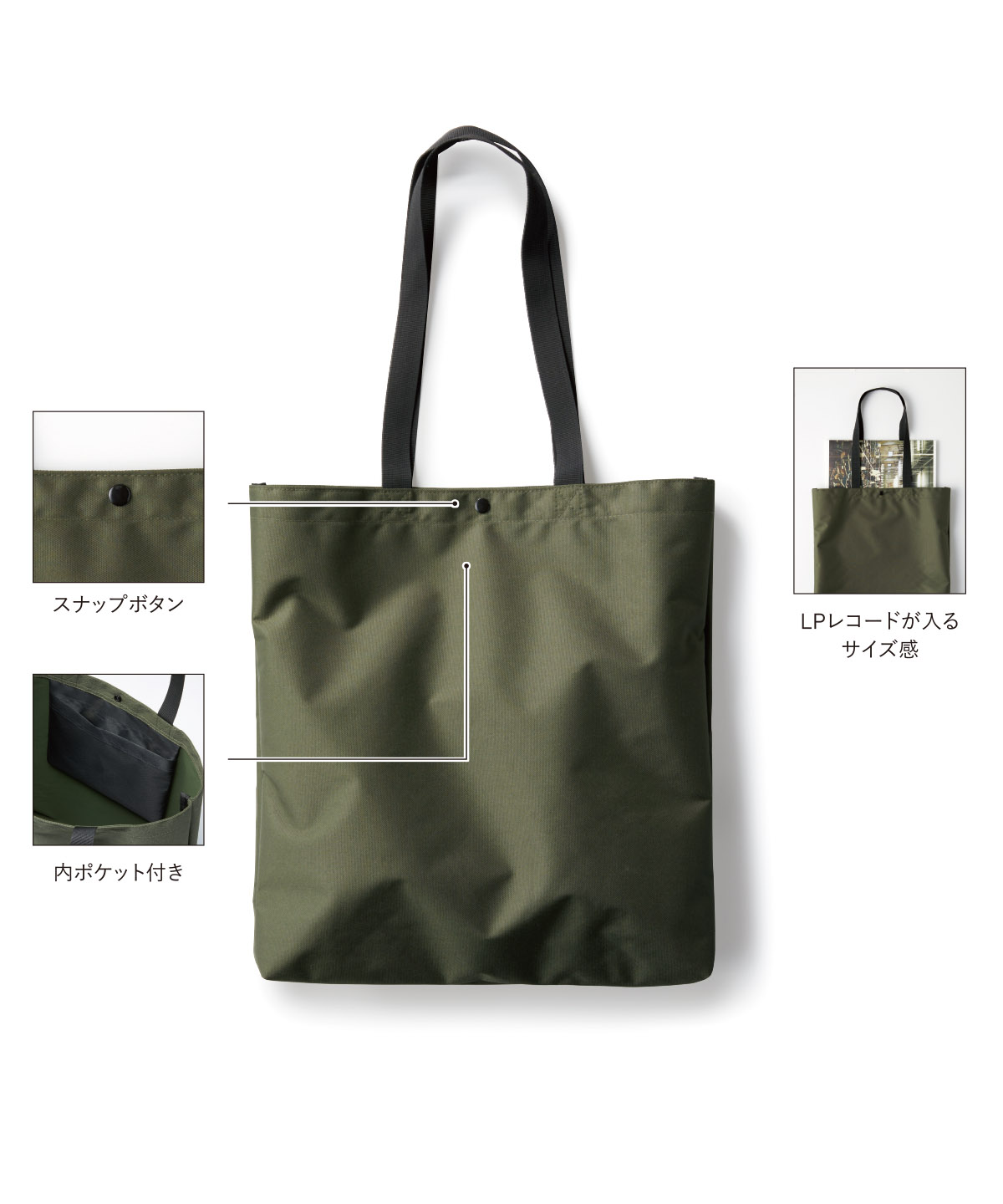 再生ポリエステルを使用した少し大きめなトートバッグ。