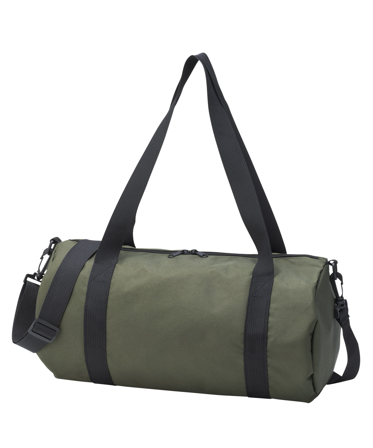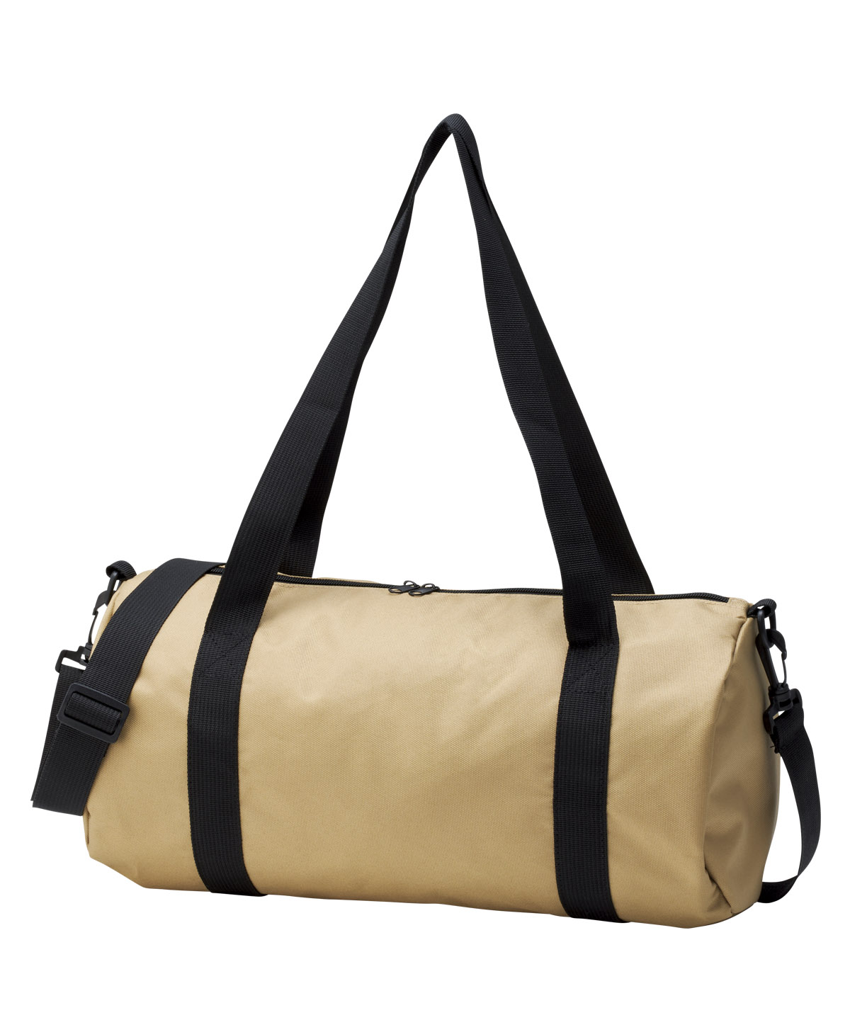 再生ポリエステルを使用したドラムバッグ。手持ちでも肩掛けでも扱いやすい2WAY仕様。