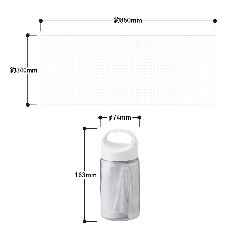 本体サイズ タオル/約W850×H340(mm) ボトル/φ74×163(mm)