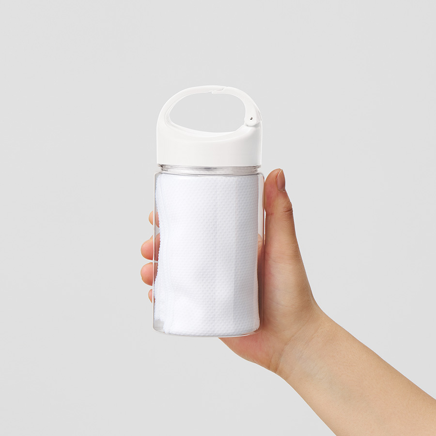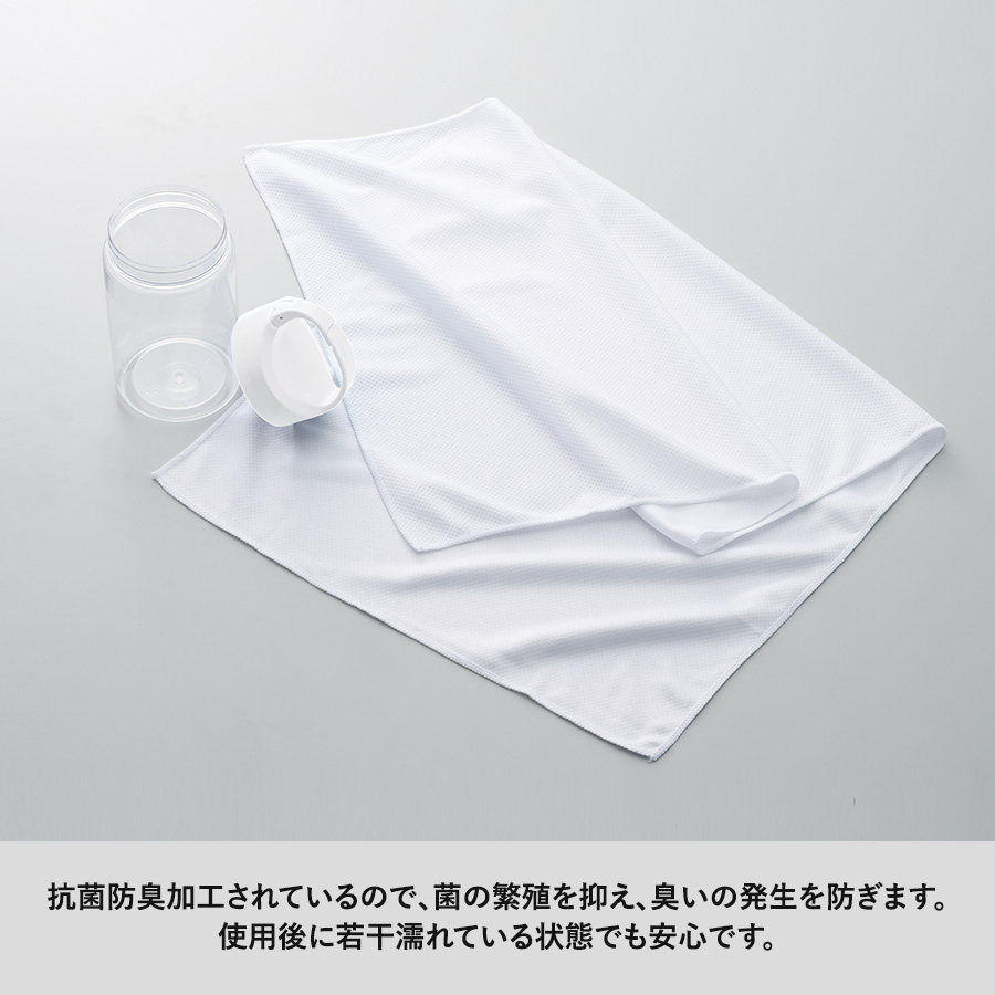 ボトル付き・抗菌防臭加工で安心の涼感フェイスタオルです。