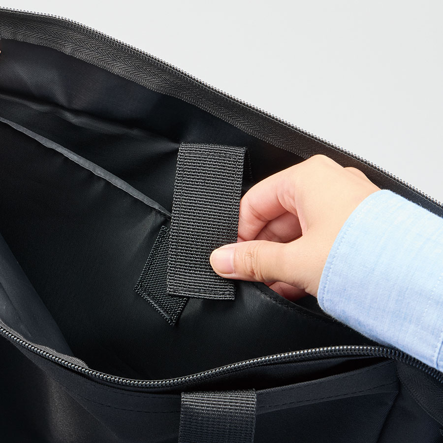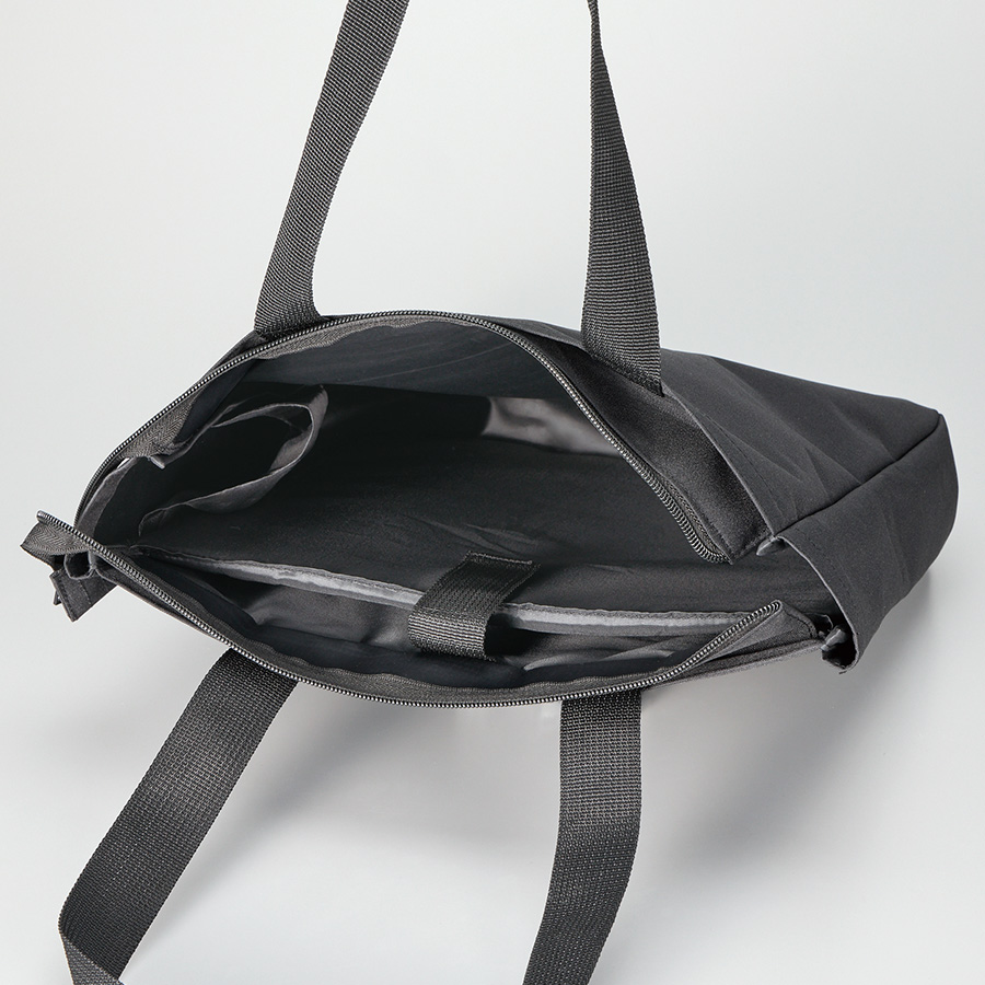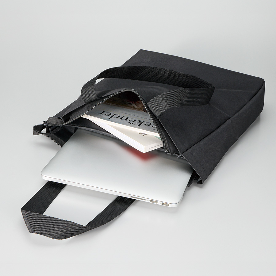 ノートPCを入れて持ち運べるファスナー付きトートバッグです。