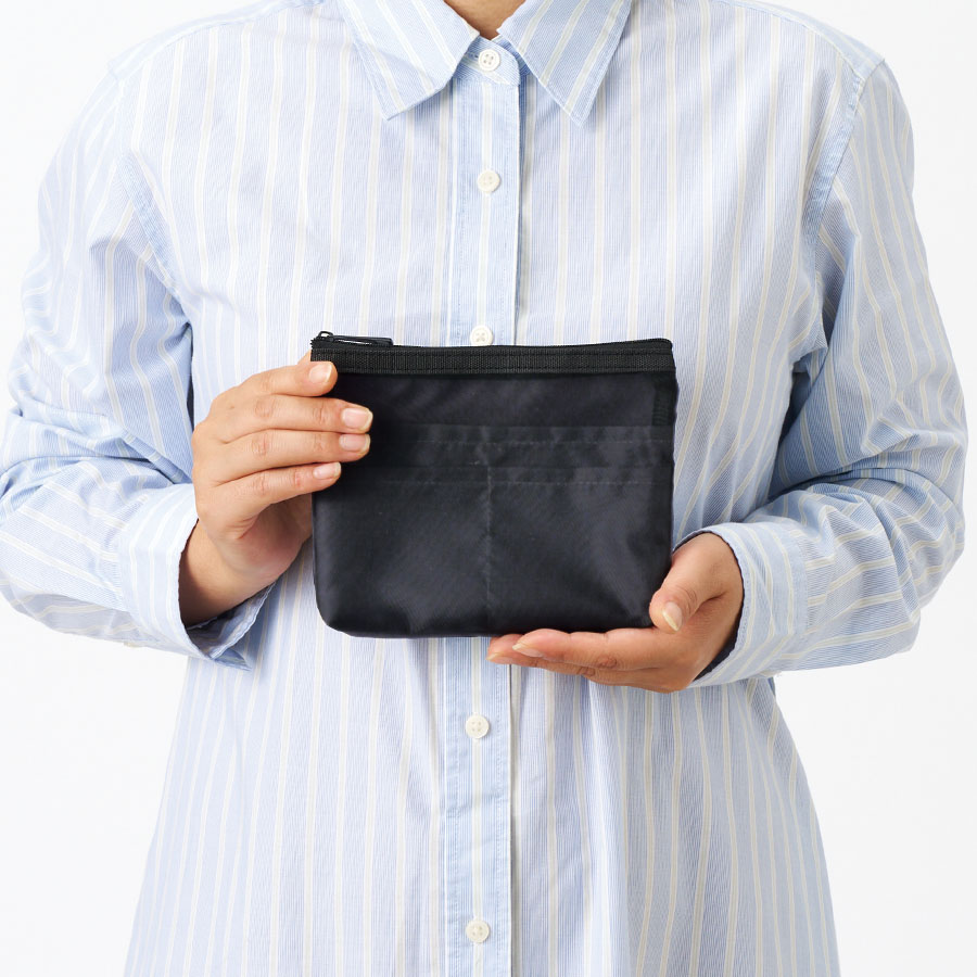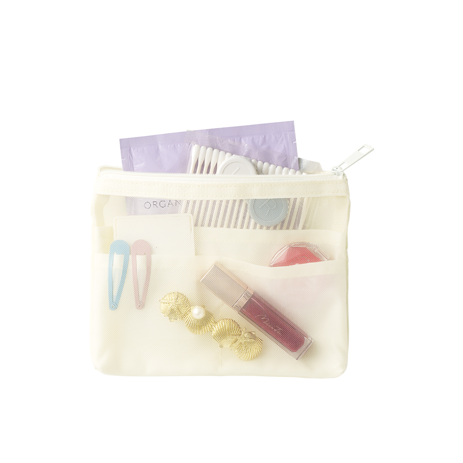 ポケットは5個ついているため、ポーチの中で中で細かく整理できます。