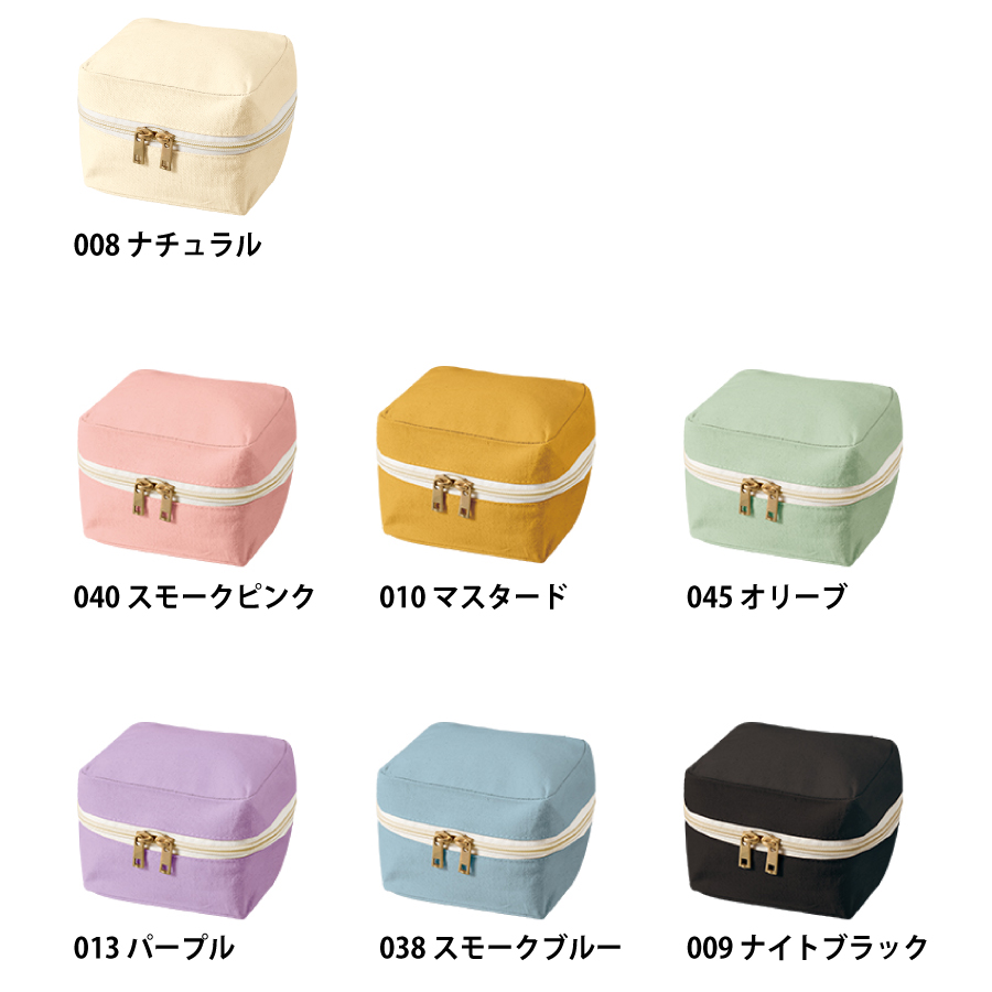 | 【キャンバススクエアファスナーポーチ(S)】 品番 TP-0009 サイズ:約W125×H125×D80(mm) 素 材:コットン(320g/㎡) |