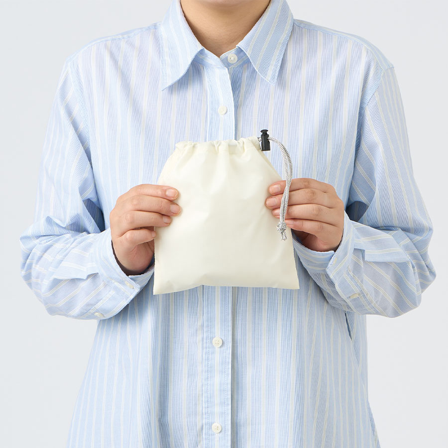 薄手のポリエステル素材とアウトドア感のあるストッパーが相性抜群!