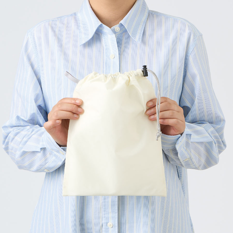薄手のポリエステル素材とアウトドア感のあるストッパーが相性抜群!