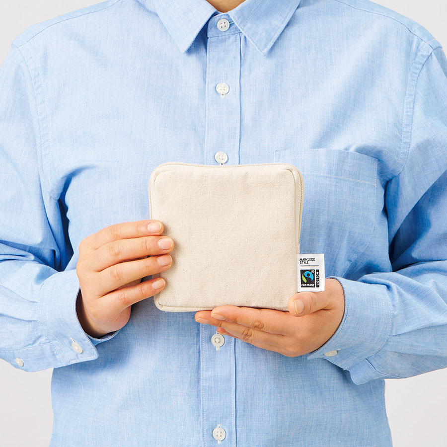 フェアトレードコットンを使用したスクエアポーチです。