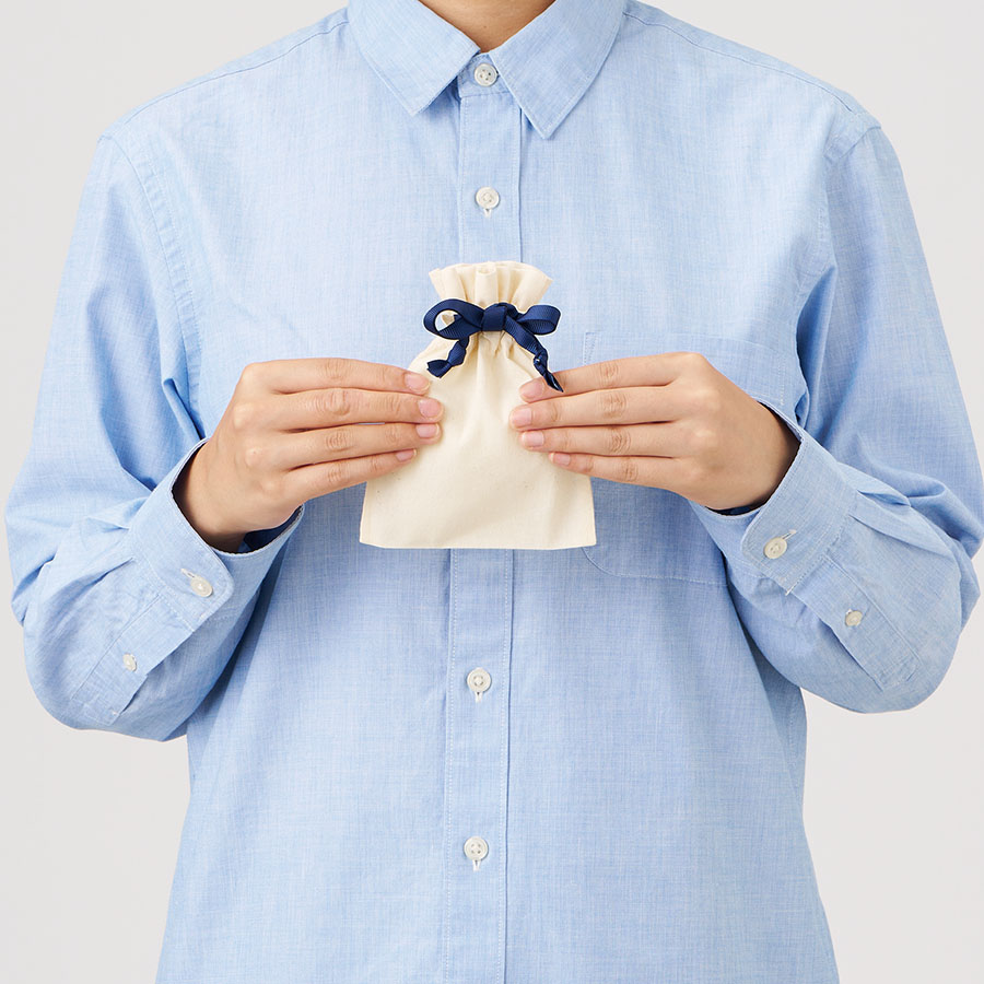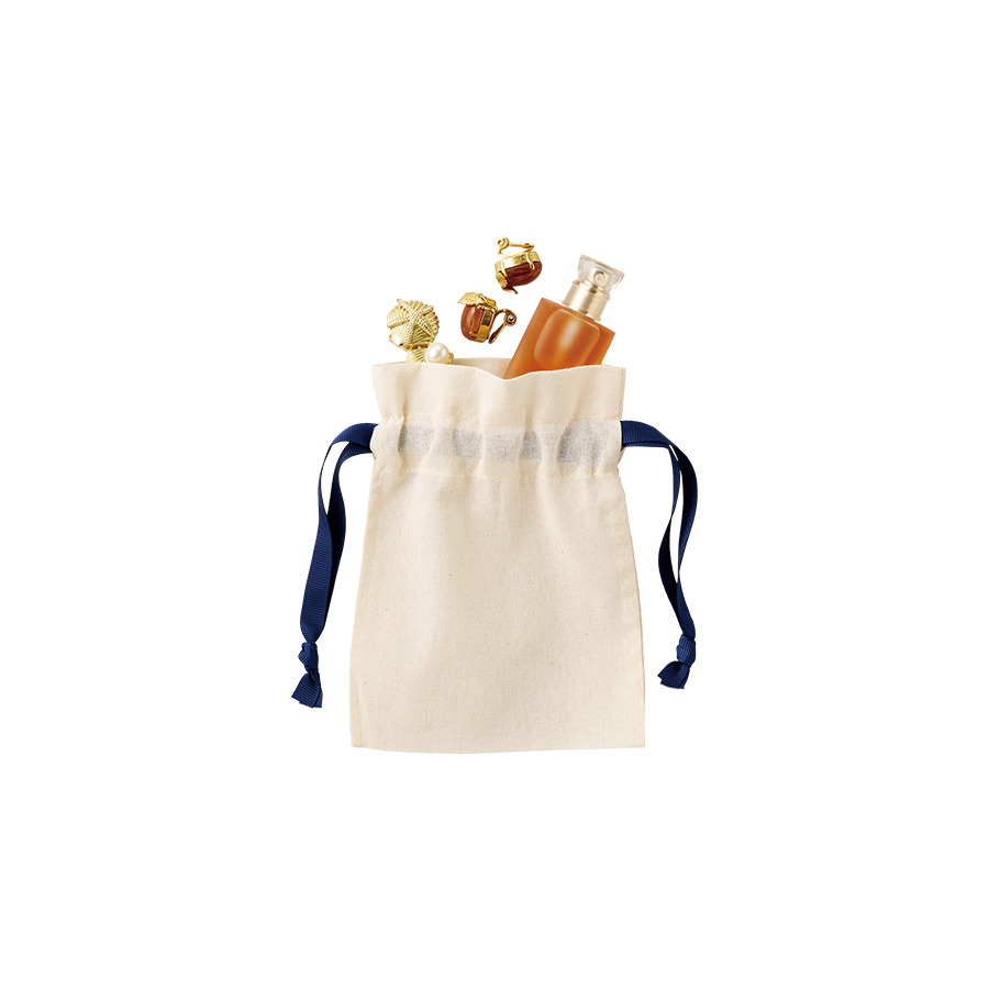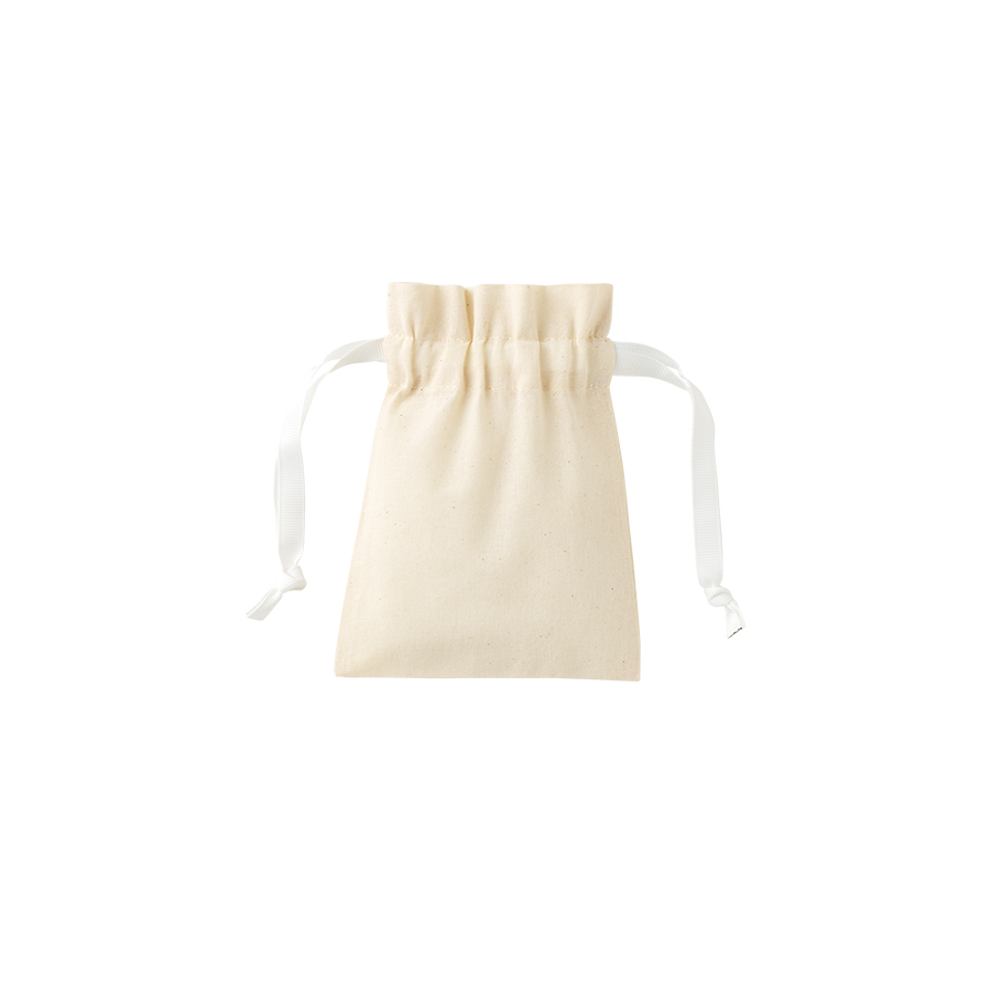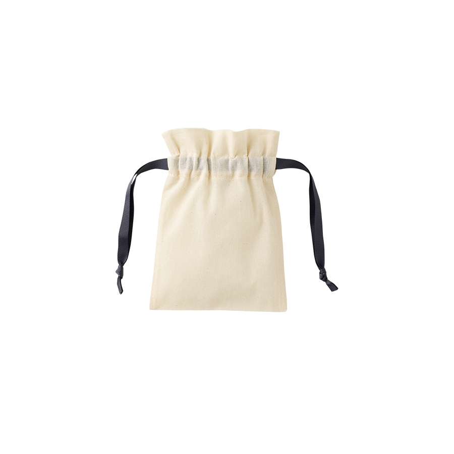 7色展開のカラーリボンがポイントのコットン巾着です。
