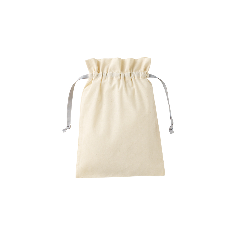 7色展開のカラーリボンがポイントのコットン巾着です。