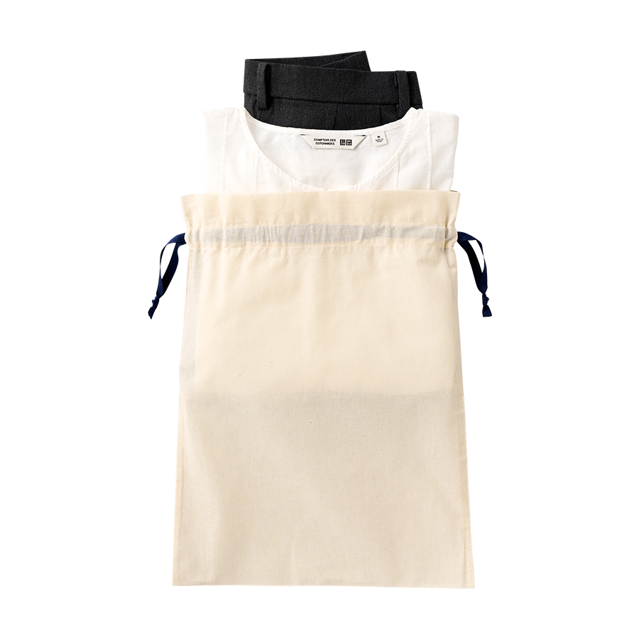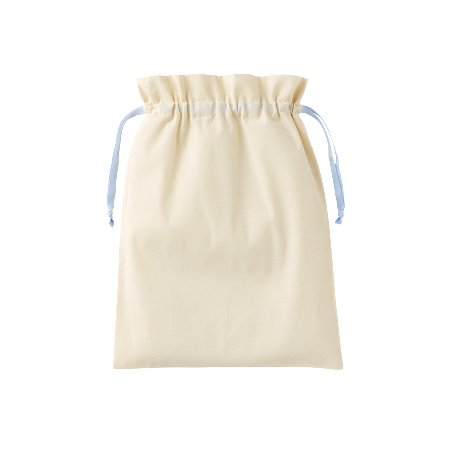 7色展開のカラーリボンがポイントのコットン巾着です。