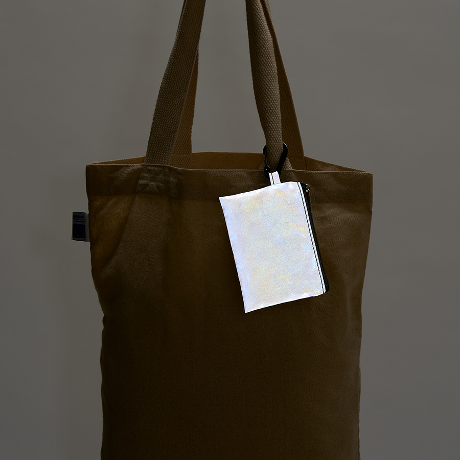 暗闇で光るリフレクターポーチです。
