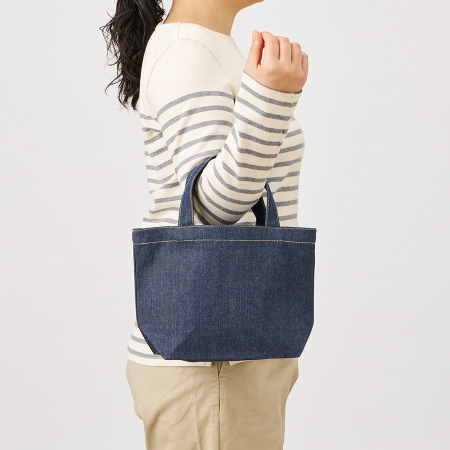定番の舟形デザインで使いやすい人気のデニムトートバッグです。