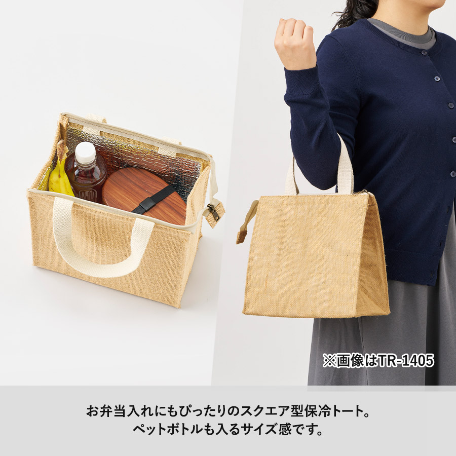 大人気ジュートシリーズの保冷スクエアトートバッグです。