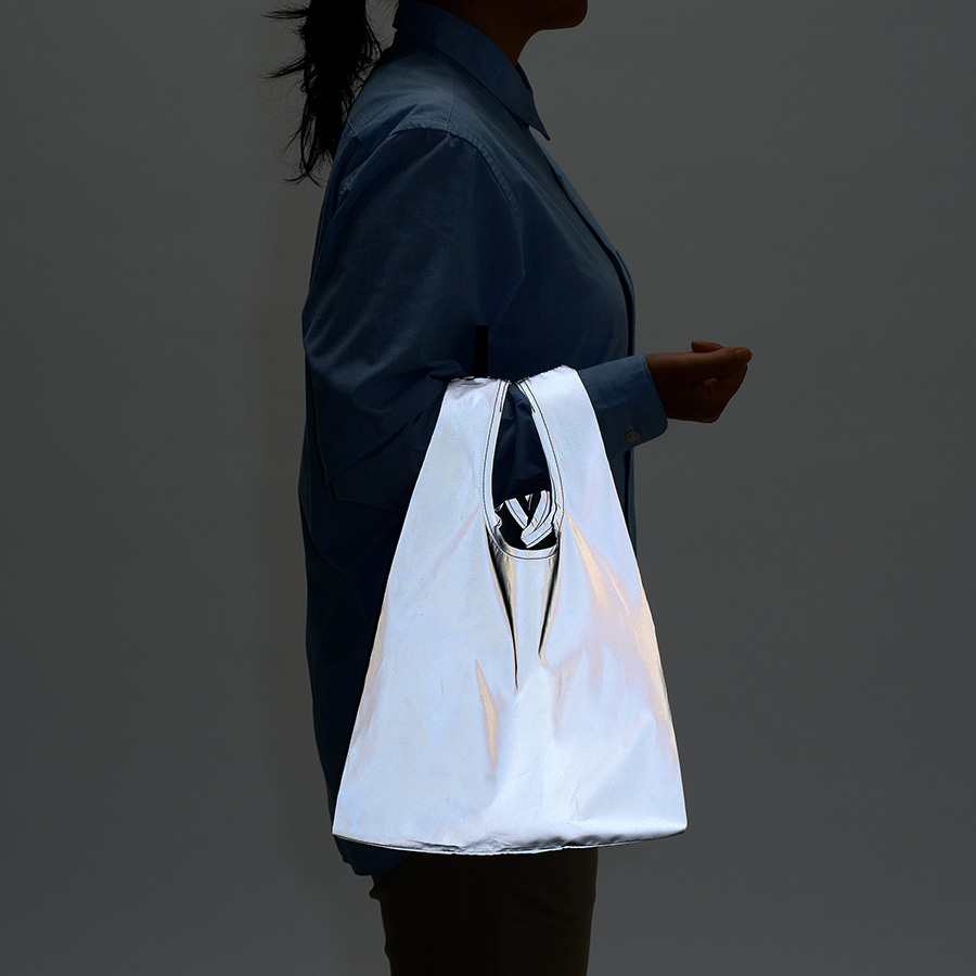 暗闇で光るリフレクターマルシェバッグです。