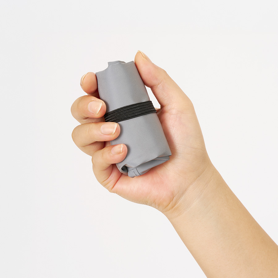 持ち手の先にゴムがついており、くるっとまとめることができるため持ち歩きにも便利です。