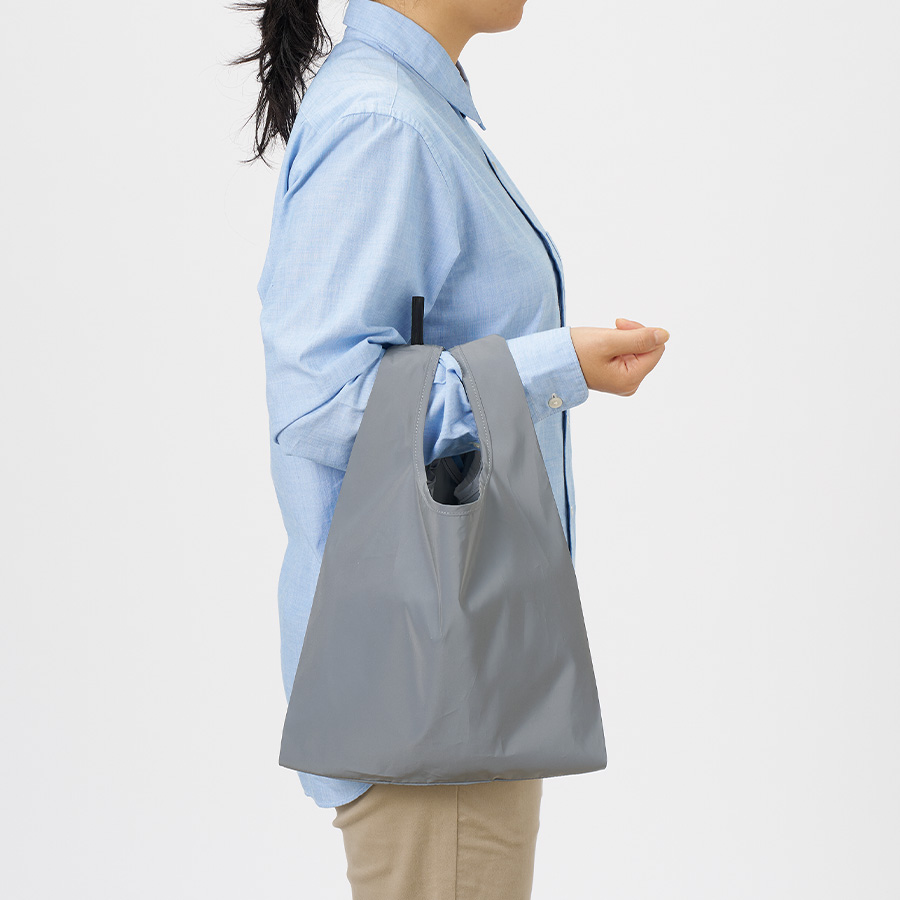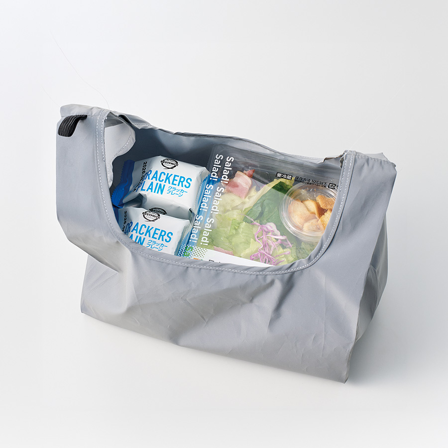 M・Lの2サイズ展開で、Mサイズはコンビニでのちょっとしたお買い物に最適なサイズ感です。