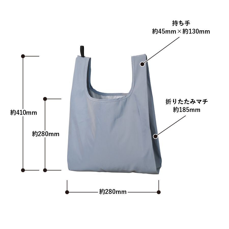 - 本体/約W280×H280(持ち手含む410)(mm) 持ち手/約W45×H130(mm) 折りたたみマチ/約185(mm)