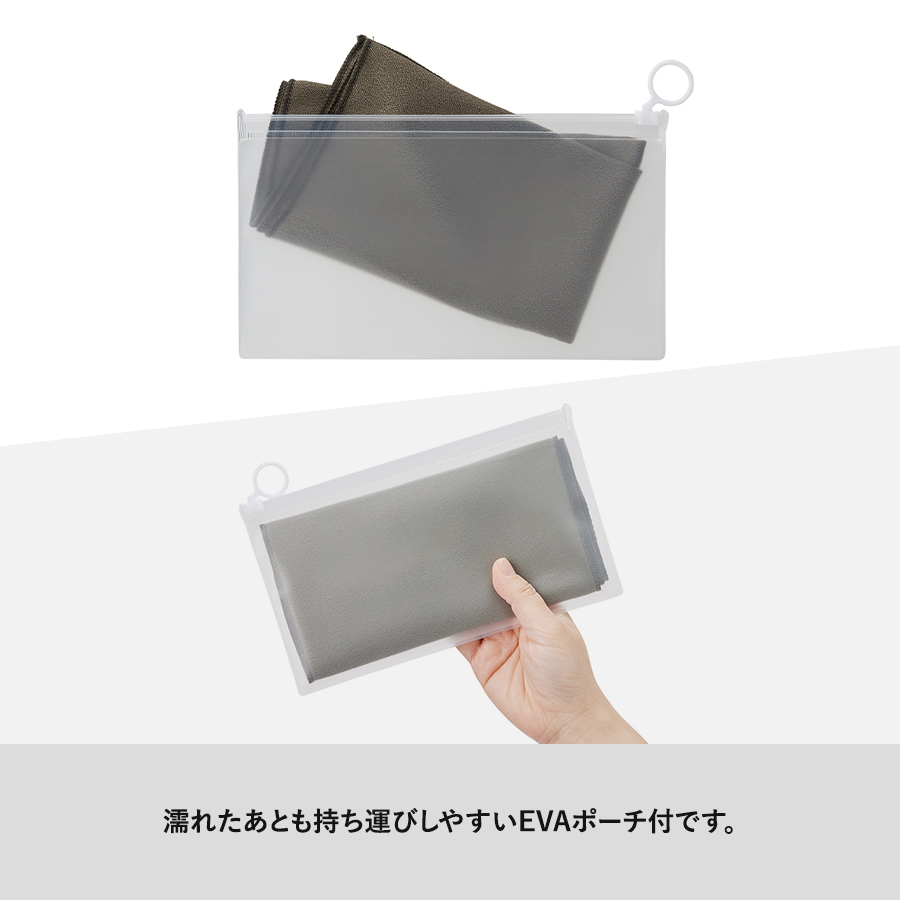 EVAポーチには濡れた後のタオルを収納することができ持ち運びにも適しています。