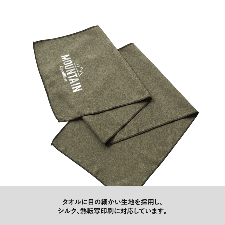 タオルの本体色はカーキ、ピンク、ライトブルーの3色展開で普段使いしやすく、男女共に使いやすいカラーが特徴的です。