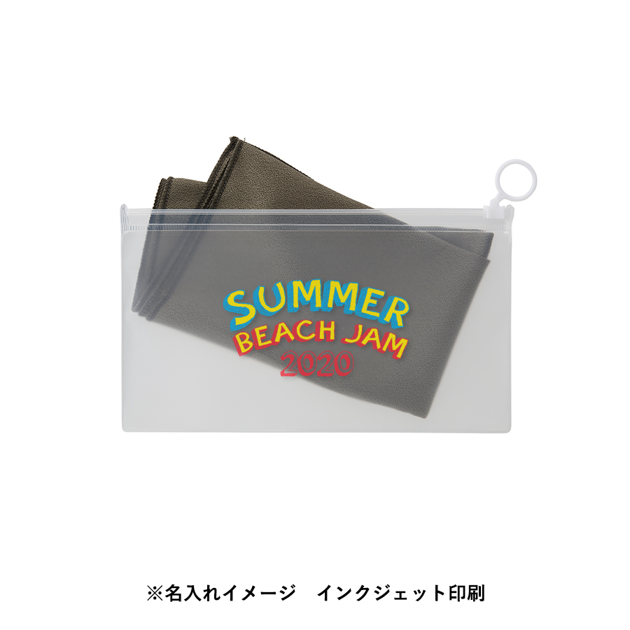 クールグッズとして人気の涼感マフラータオルに名入れもできるEVAポーチがついた商品になります。