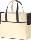 大きめサイズのトートバッグです。大きな外ポケットと便利なサイドポケットで、細かいものもすっきり収納。マザーズバッグとしてもお使いいただけます