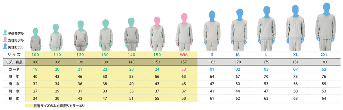 ※衣類の下に何枚衣類を着用するのかによって、下記イメージの目安は異なります。 大よその目安としてお考え下さい。