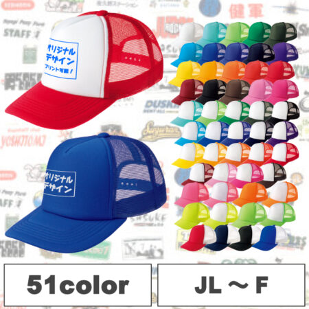 豊富なカラーが嬉しい、51色展開!リーズナブルなメッシュキャップです。アジャスターでサイズ調整可能で、学校行事や、イベント等のスタッフ用としてご注文いただいております!