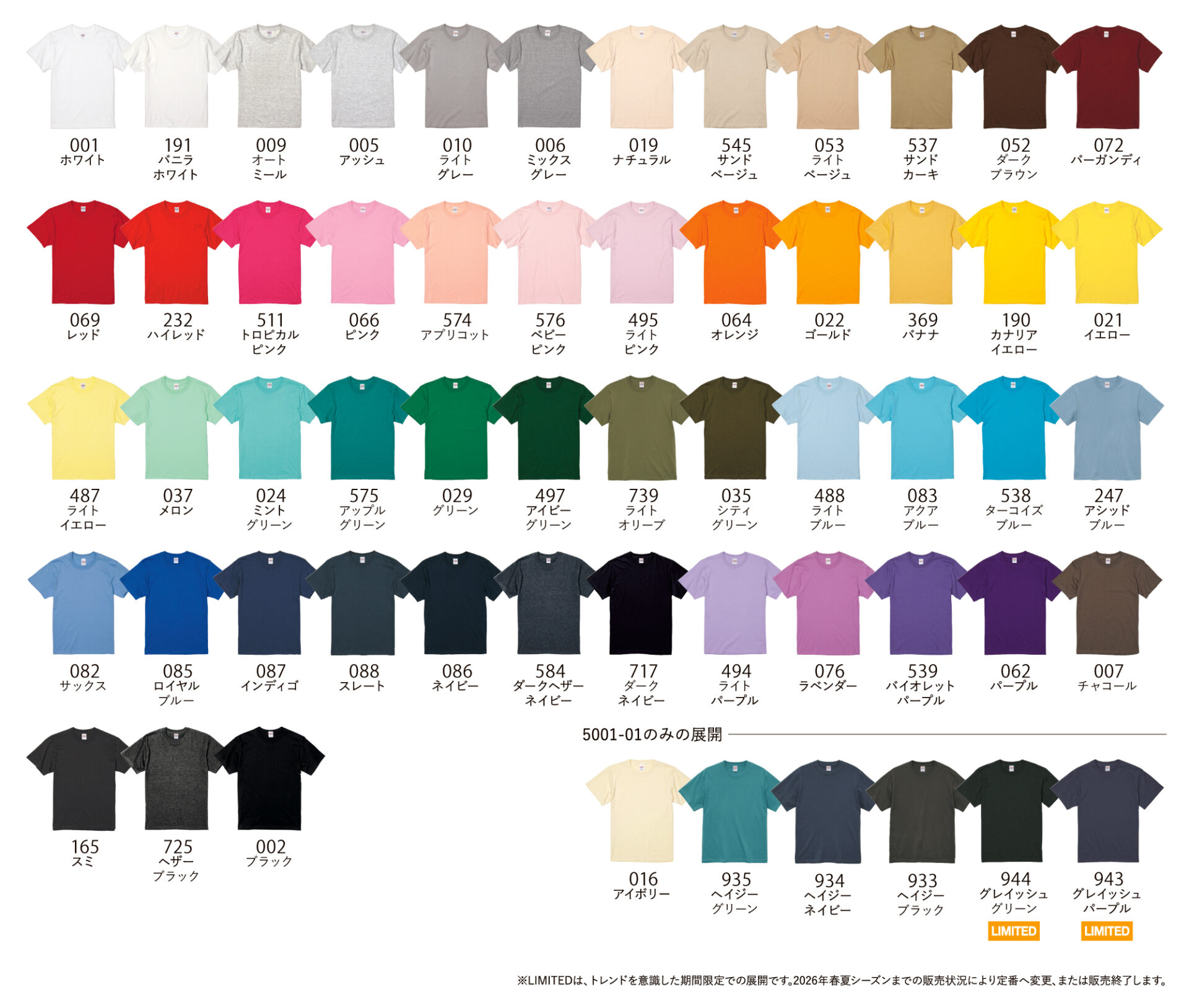 | Male 着用品番:5001-01 モデル身長:182cm 着用サイズ:L |